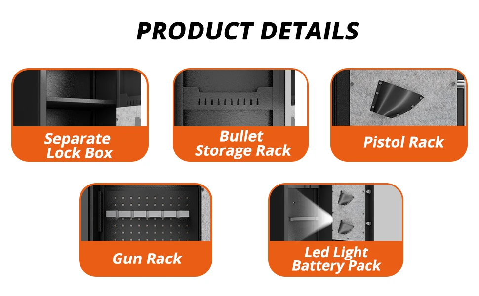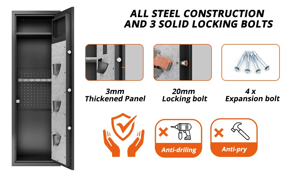 - 【Heavy Duty Gun Cabinet, More Secure】 90lbs heavy duty gun safe cabinet, the entire cabinet is made of high quality steel, while the gun cabinet comes with an alarm device, forced unlocking caused by vibration and wrongly enter the password more than three times will trigger the alarm device, security and anti-theft.