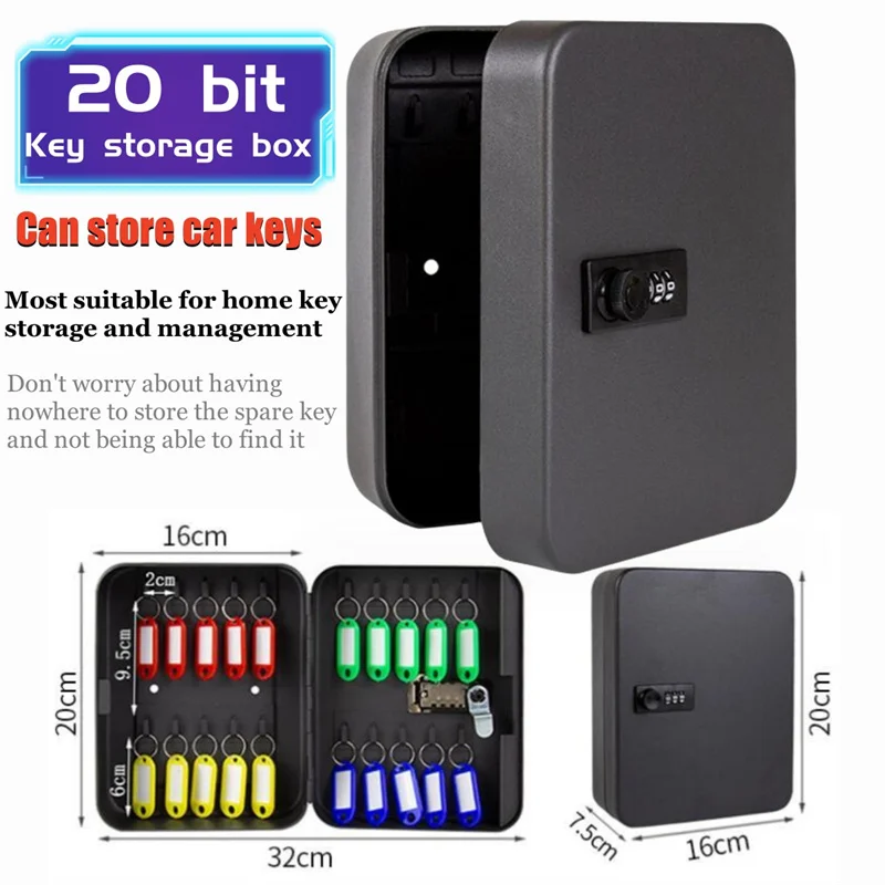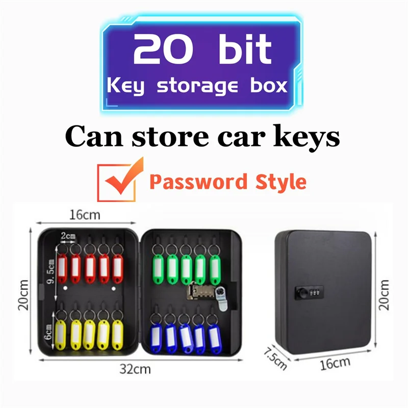 20 Bit Dedicated Key Storage Box Family Spare Key Management MINI Safe Box Lockbox Password Box For Car Wall Mounted Metal Box