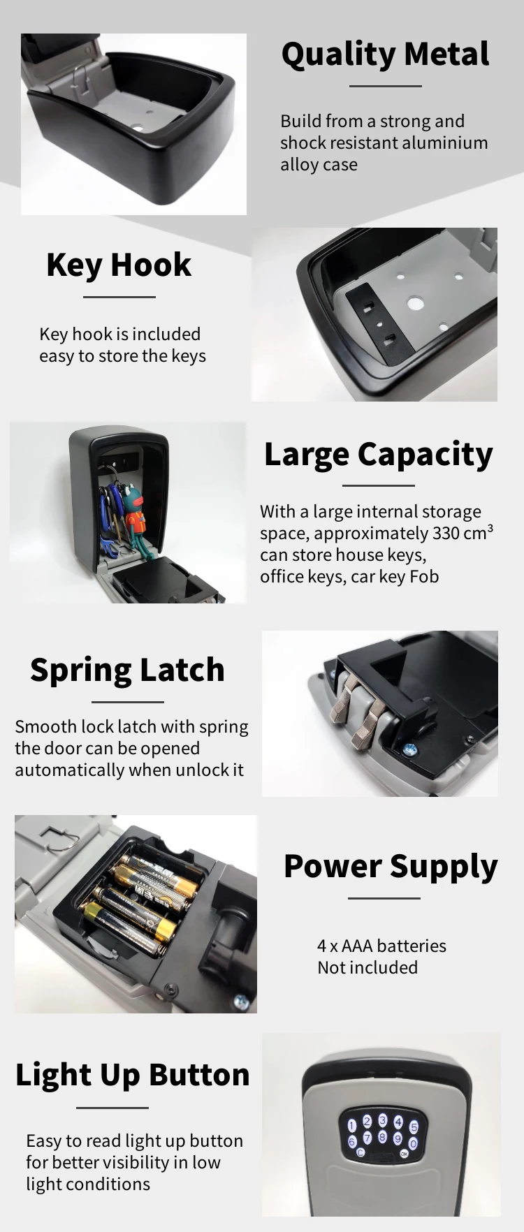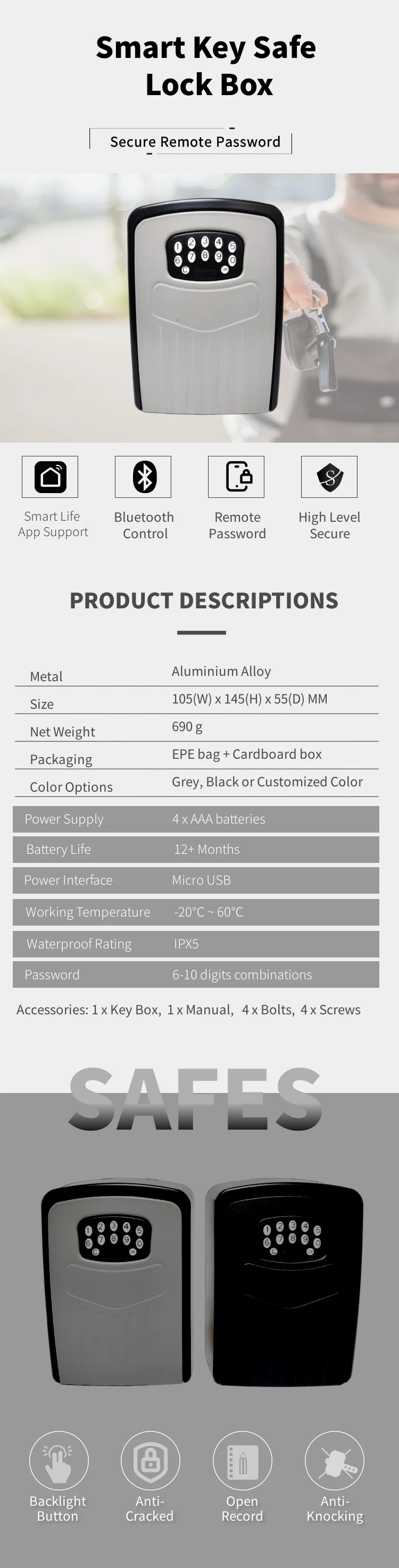 2021 Smart Key Safe Lock Box APP Connected Car Key FOB Storage Grey Wall Mounted Remote Password Control Large Lockbox