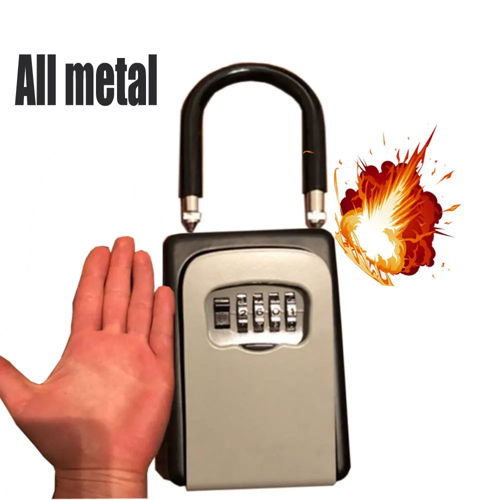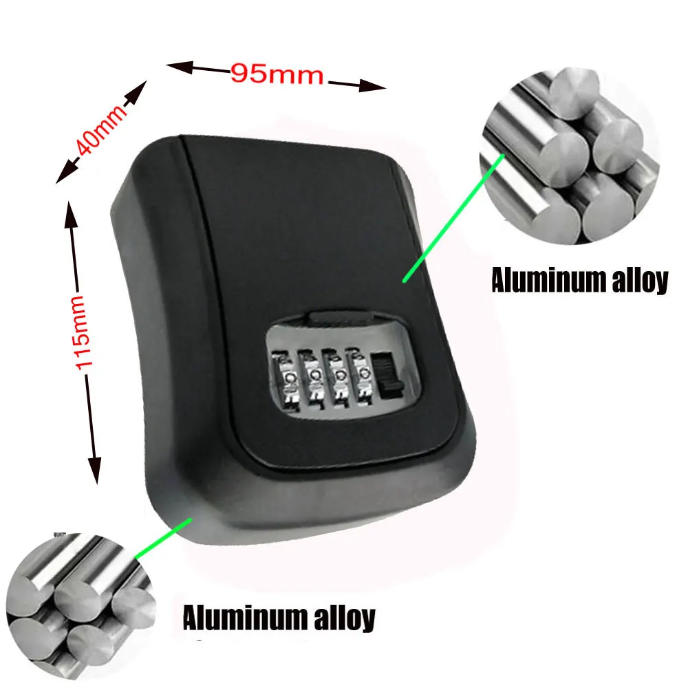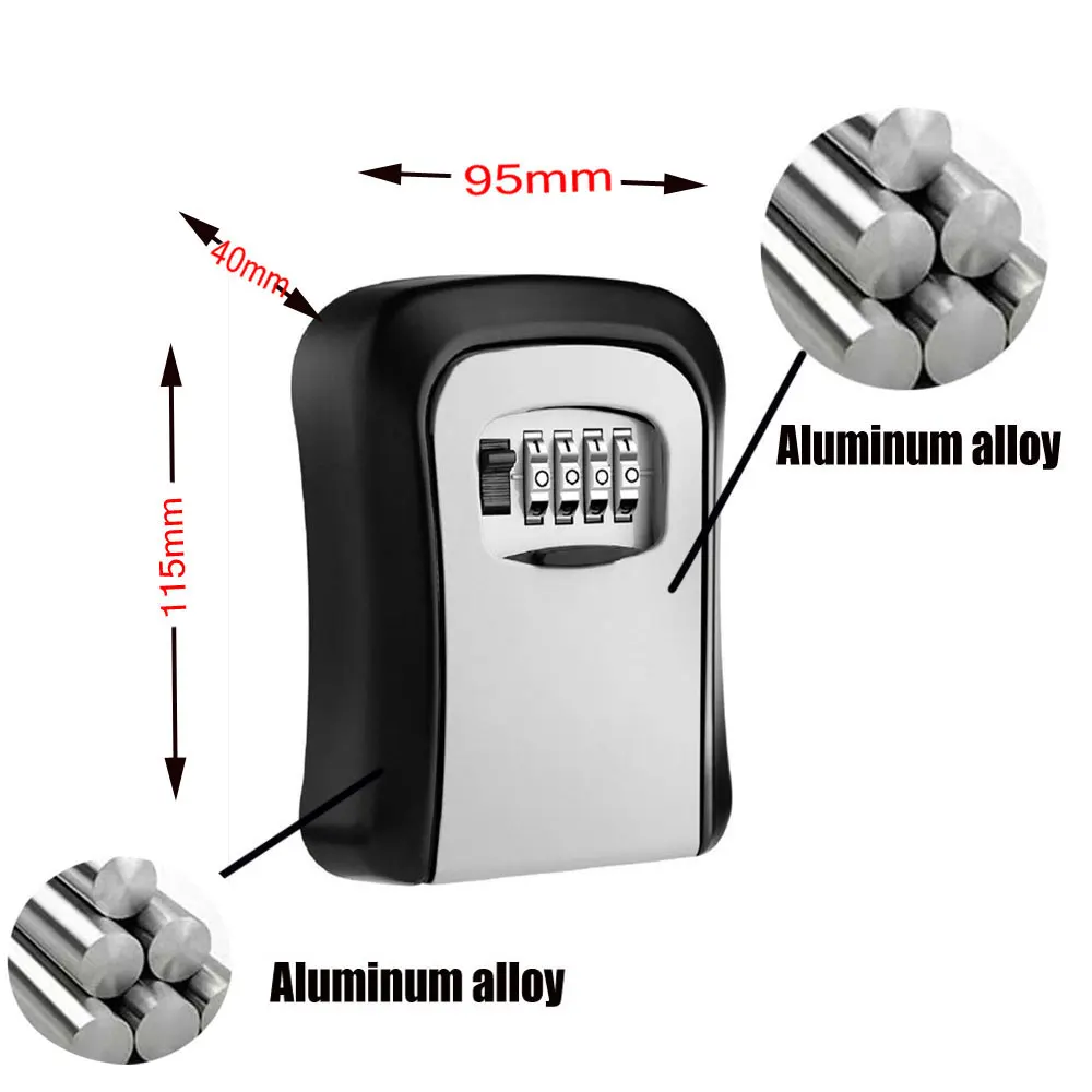 2022 Key Lock Box Wall Mounted Aluminum Alloy Key Safe Box Weatherproof 4 Digit Combination Keys Storage Lock Boxes