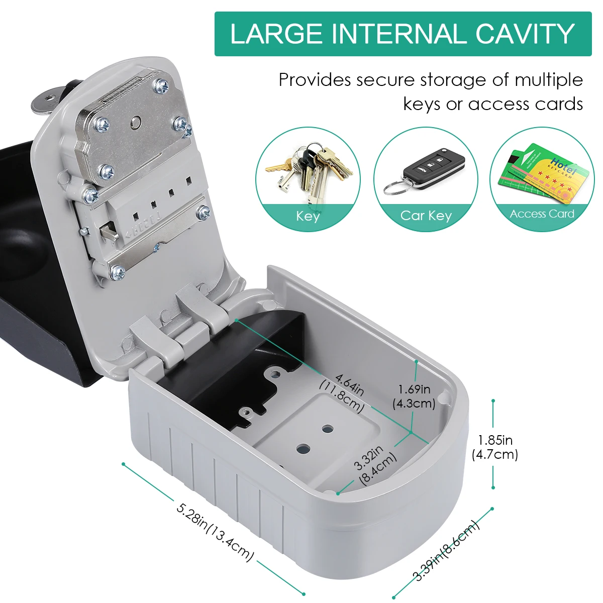 【Large Capacity】 Large space which you can place at least 5 keys. You can put your house keys or car keys in it when you go to work or on vacation. The box can also be used to secure multiple credit cards or even cash; It's up to you.