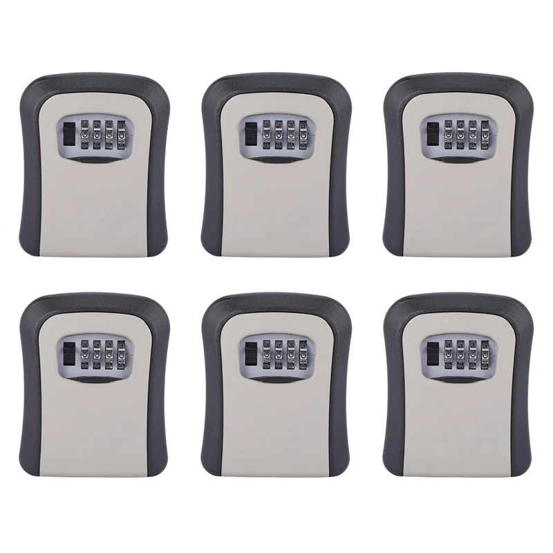 6X Key Lock Box Wall Mounted Aluminum Alloy Key Safe Box Weatherproof 4 Digit Combination Key Storage Lock Box