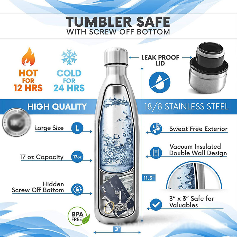 1.The Diversion Tumbler Steel Can Safe acts as a real drinking bottle, with a secret compartment on the bottom.