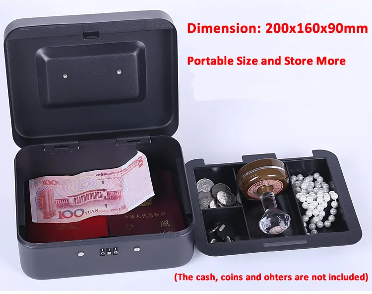 It has removable tray for coins or small things. It adopts strong steel and surface frosted treatment, which is more durable and do not rust. It is perfect for storing valuable belongings at home, office, school.