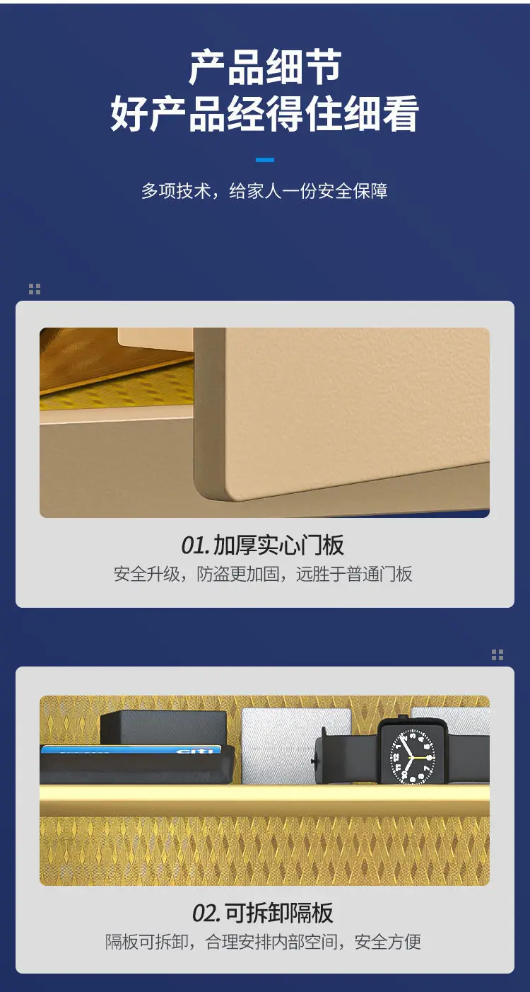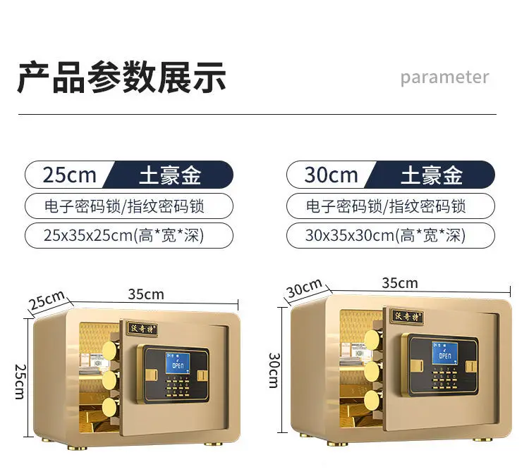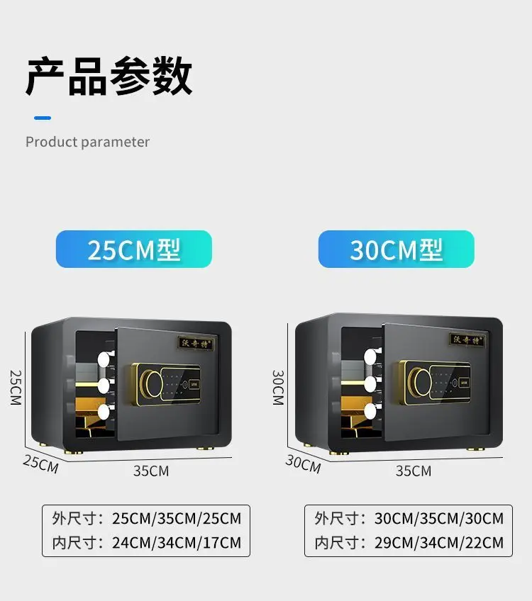 Product Description 0.8/1.7/2.1Cubic Feet Safe Box This safety box features a 0.8/1.7/2.1 cubic feet storage capacity and reliable lock systems. You can securely and quickly access the safe with a key, fingerprint, digital code, or fingerprint & digital keypad. It