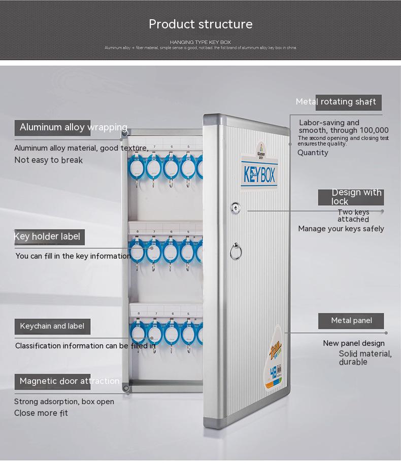 Aluminum alloy Key Cabinet Wall Mounted Security Management Keybox Storage Safes Contains key cards For Company Home Office