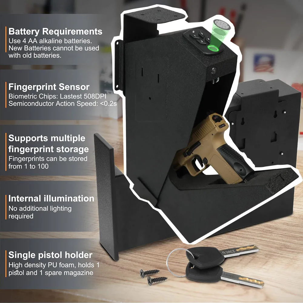 Automatic Pulling And Hanging Gun Box Hidden Safes For Home Biometric Fingerprint Hand Gun Auto-open Steel Storage Safe Box
