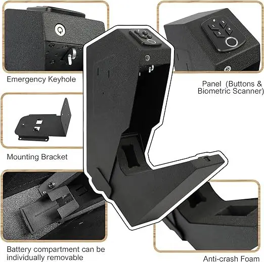 In addition to biometric unlocking, the biometric fingerprint safe also provides a keyboard and emergency keys (haves 2). The keyboard buttons are slightly raised to prevent accidental touch. We support for flexible numbers of password digits (3-6 digits). In addition, the lock cylinder adopts multiple anti-theft technologies to prevent prying.