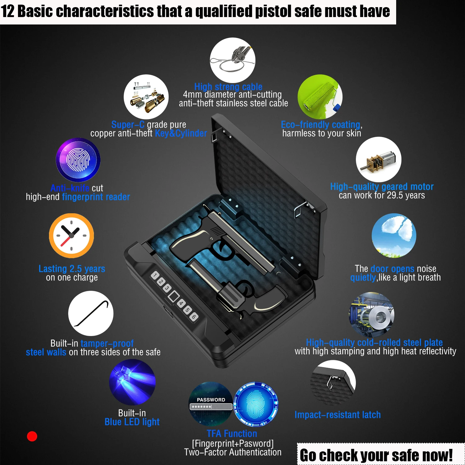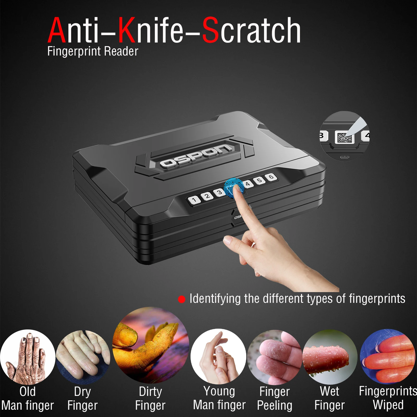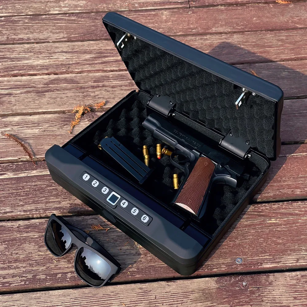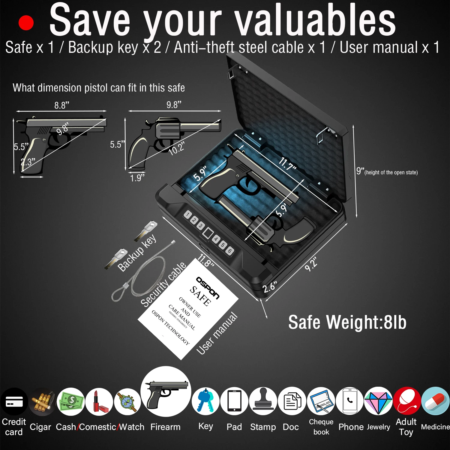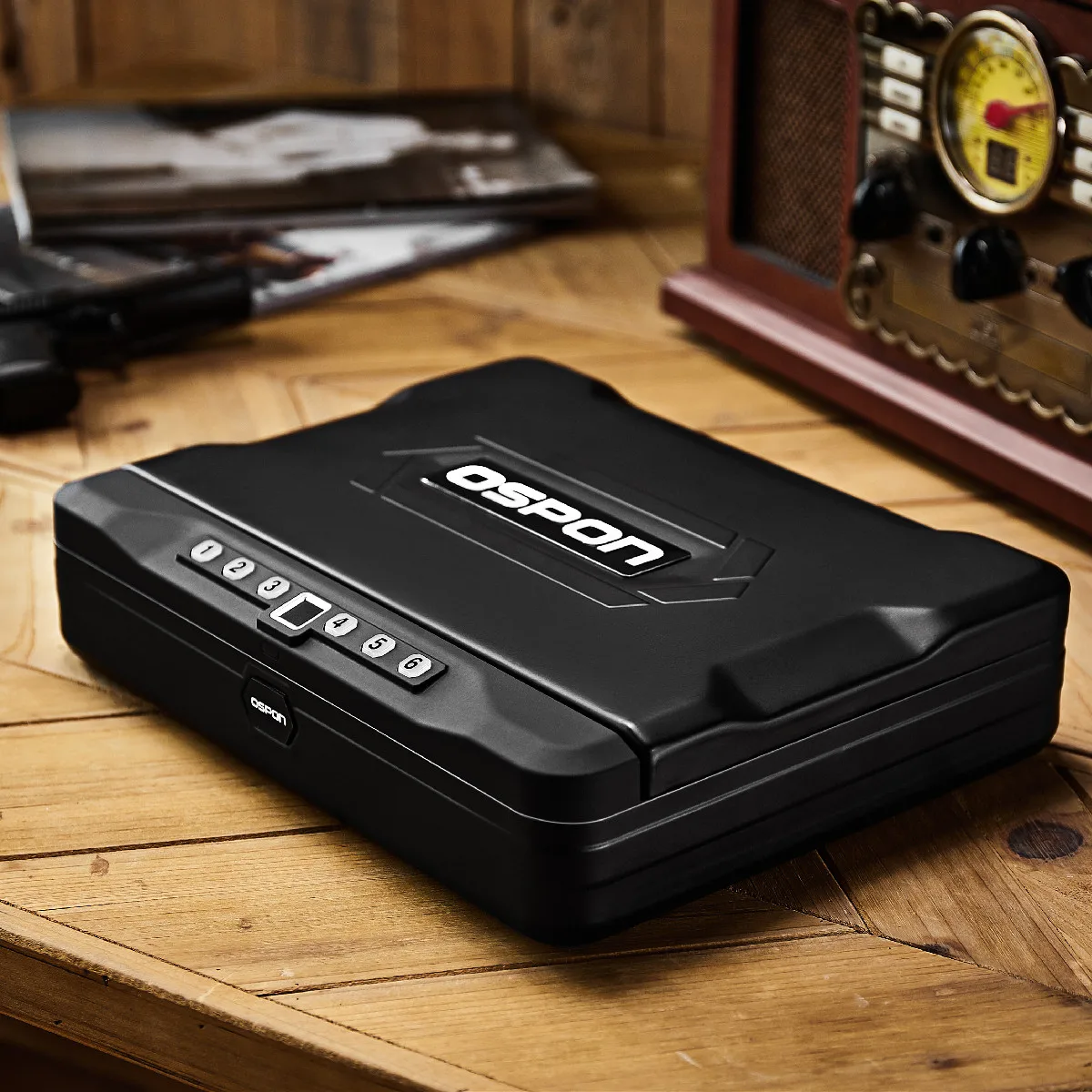 Biometric Fingerprint Digital Password Quick-Access Pistol Firearm Safety Gun Vault Safe Box Case For Handgun & Ammo Ospon Brand