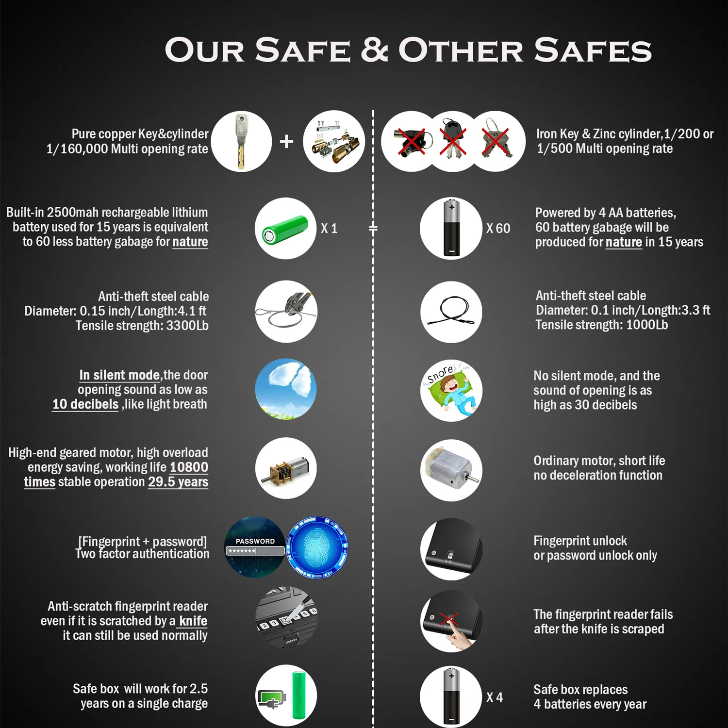 ● The safe can work for 2.5 years with one charge (it is recommended to charge once every 6 months to maintain battery activity)