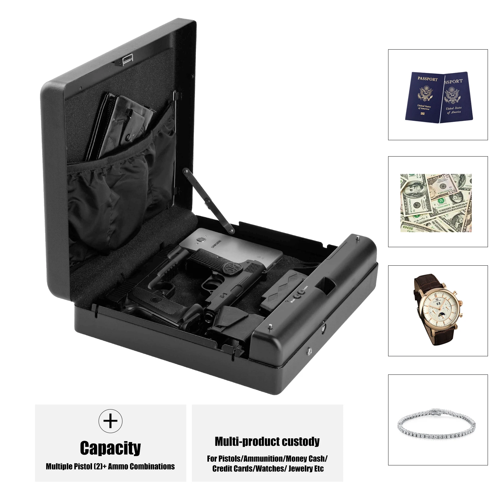Biometric Fingerprint Portable Pistol Handgun Weapon Firearm Safe Vault Case Box For Ipad 13 Inch laptop Ammo Cash Money Ospon