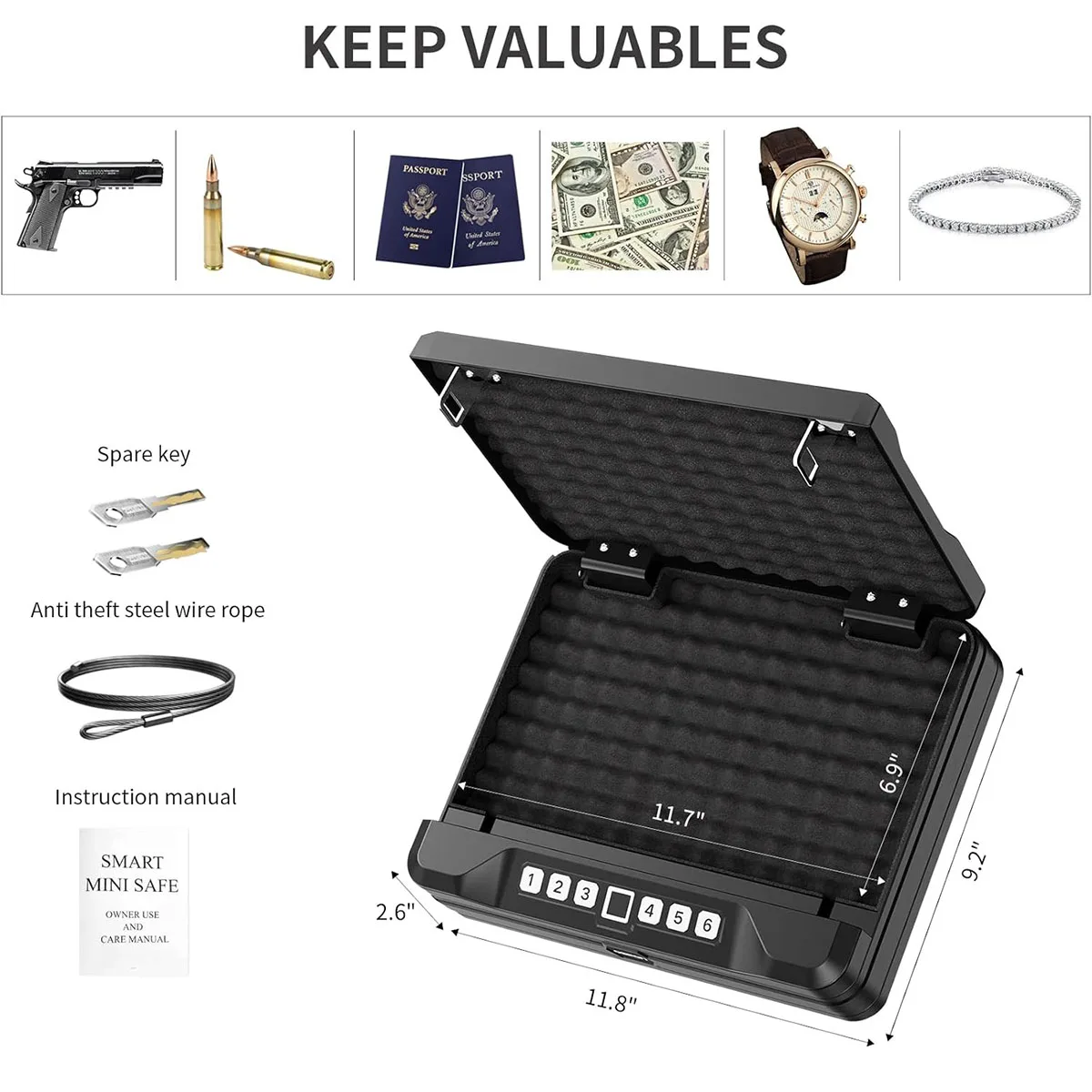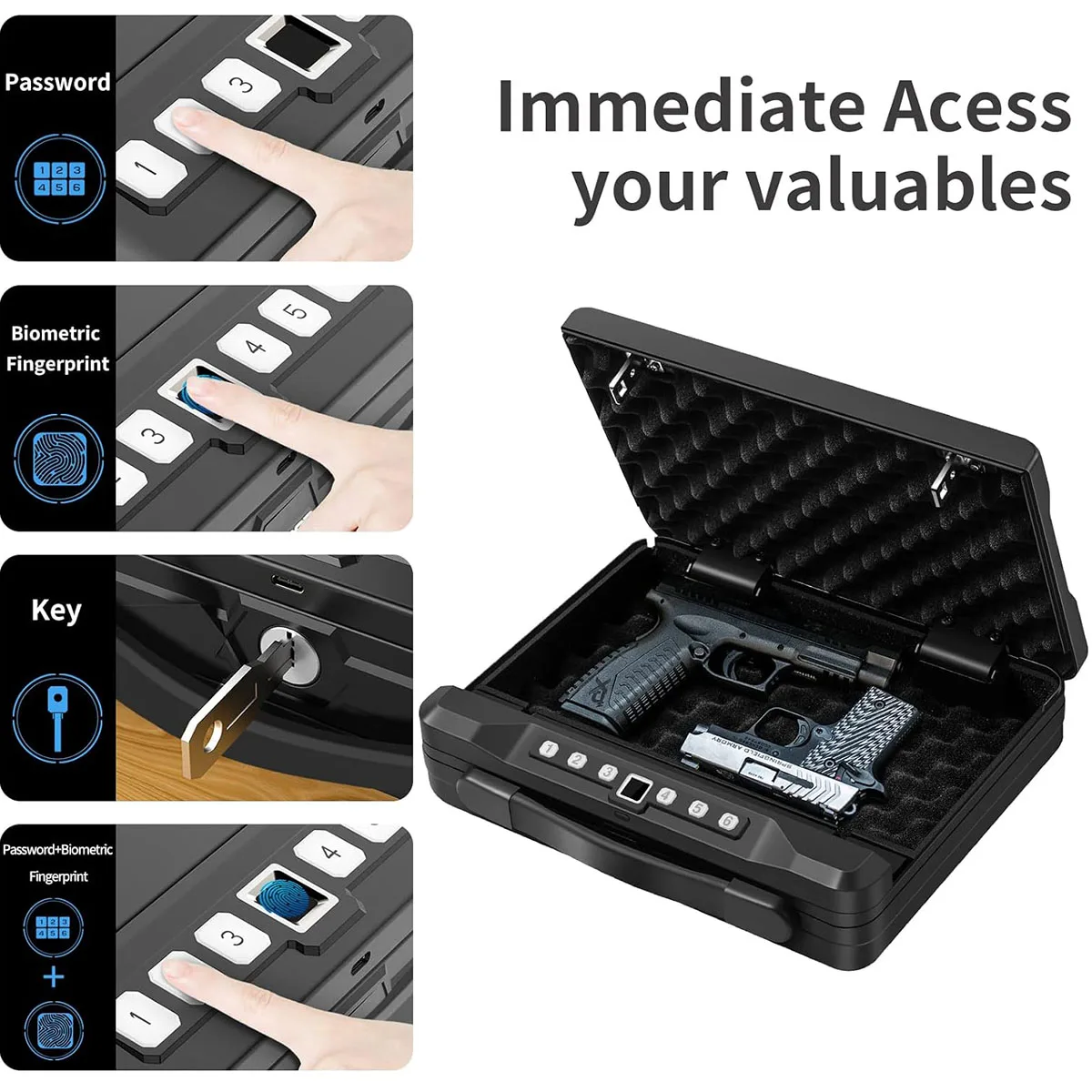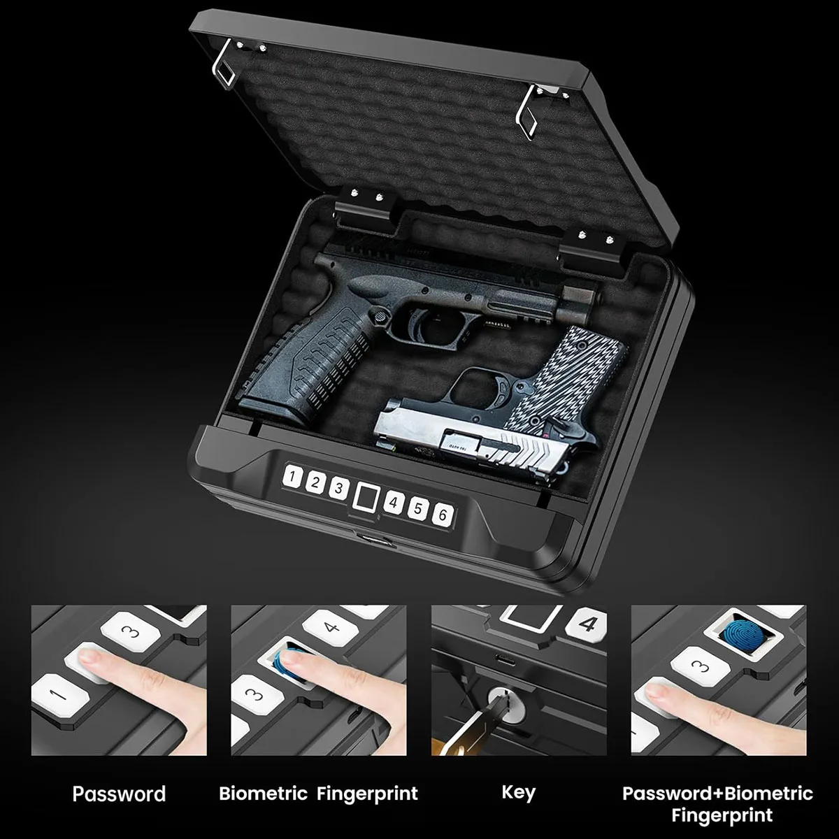 Biometric Gun Safe for Handgun Gun Safe Box for Car Bedside Nightstand Under Bed Pistol Safe with Fingerprint Lock Password Key