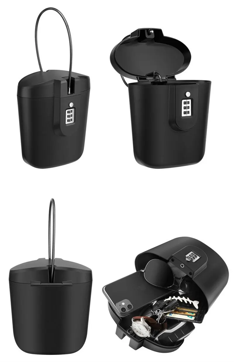 Black New Portables Beach Bucket Password Box Storage Outdoor Mini Phone Wallet Safe Boxs Portable Handle Designer Anti Falling