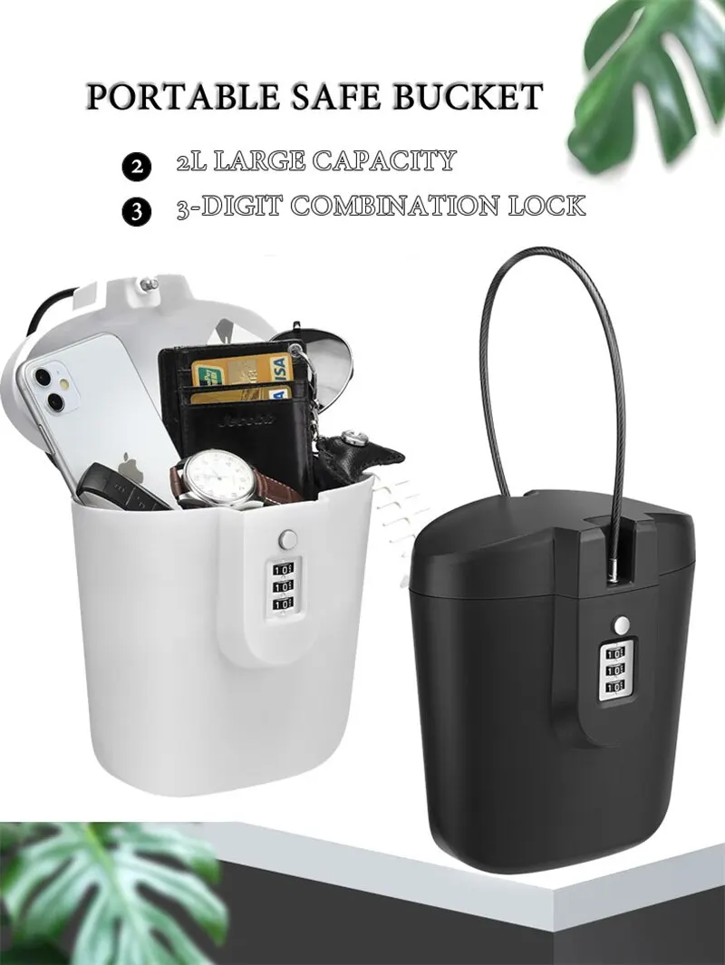 Black New Portables Beach Bucket Password Box Storage Outdoor Mini Phone Wallet Safe Boxs Portable Handle Designer Anti Falling