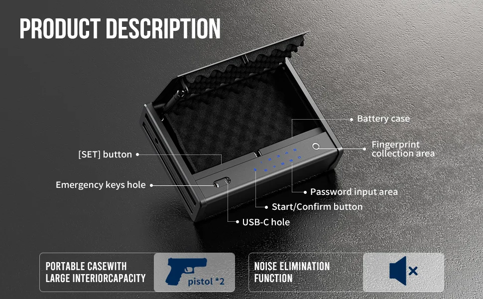 Item Type: Fingerprint Gun Safe for 2 handguns