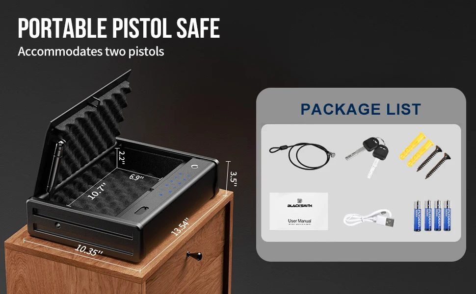 This Blacksmith SF0201 Fingerprint Gun Safe for 2 Pistols is designed to cater to your specific needs, ensuring safety, accessibility, and convenience. Get peace of mind knowing that your firearm is secure, yet accessible when you need it most.