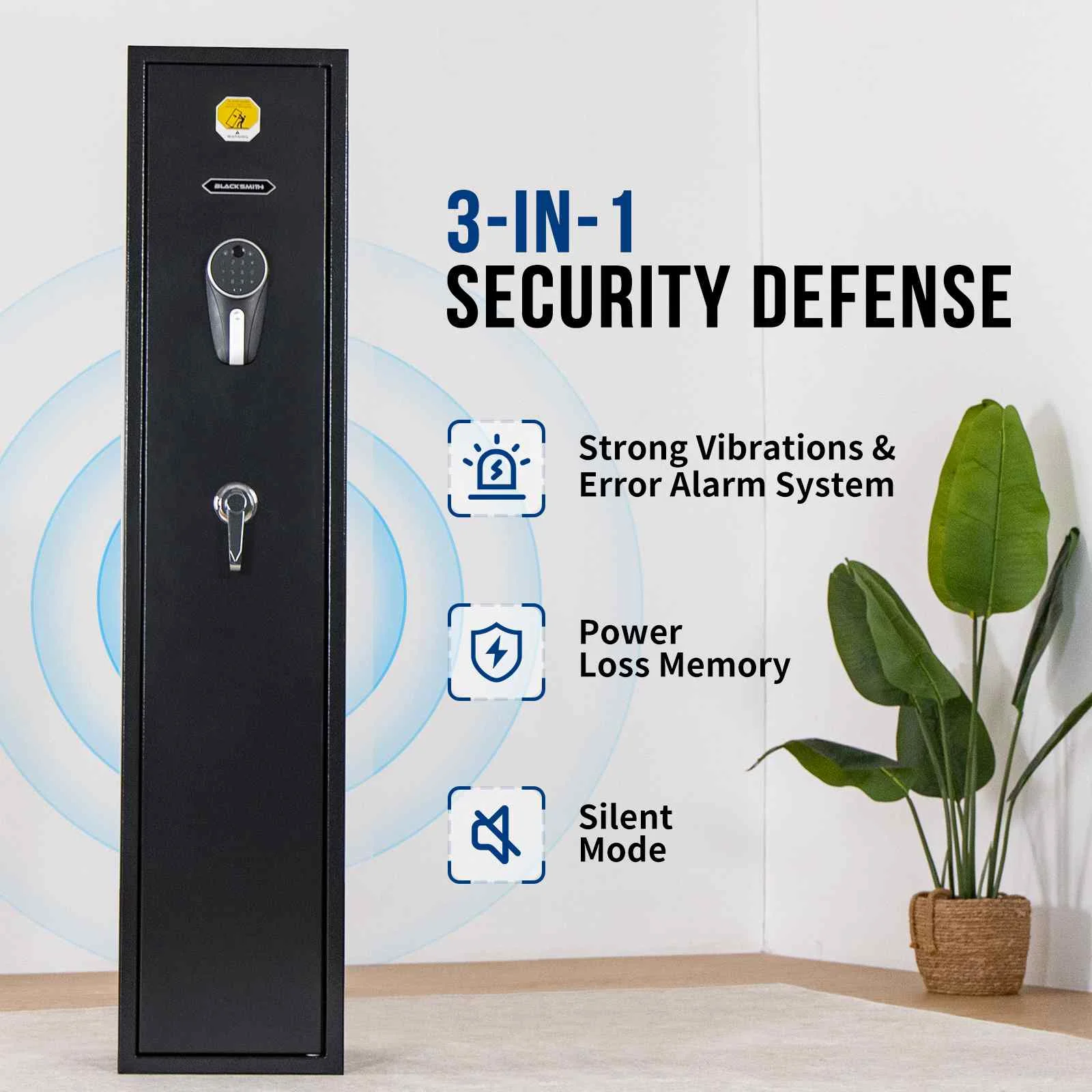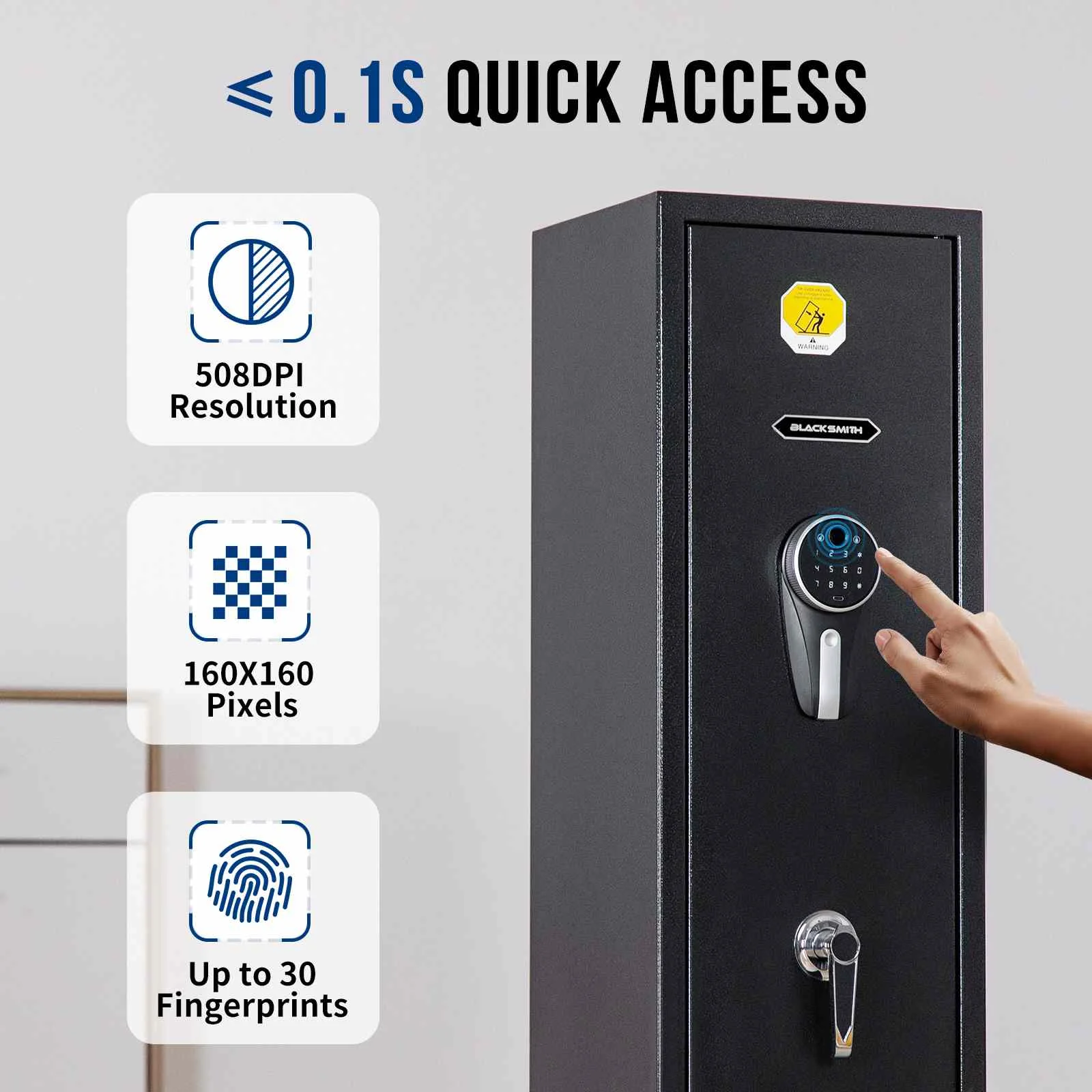 BlackSmith Pro-SF0104 Biometric Alloy Steel Rifles Safe Rifles Pistols Quick Access Fingerprint Gun Cabinet Dual Alarm 54x11x11