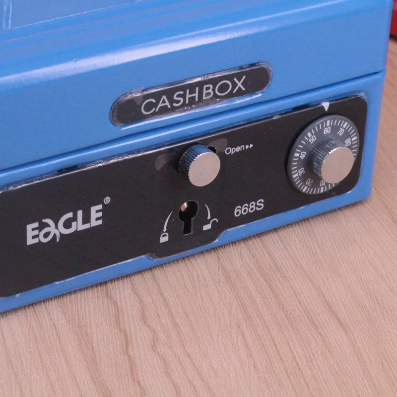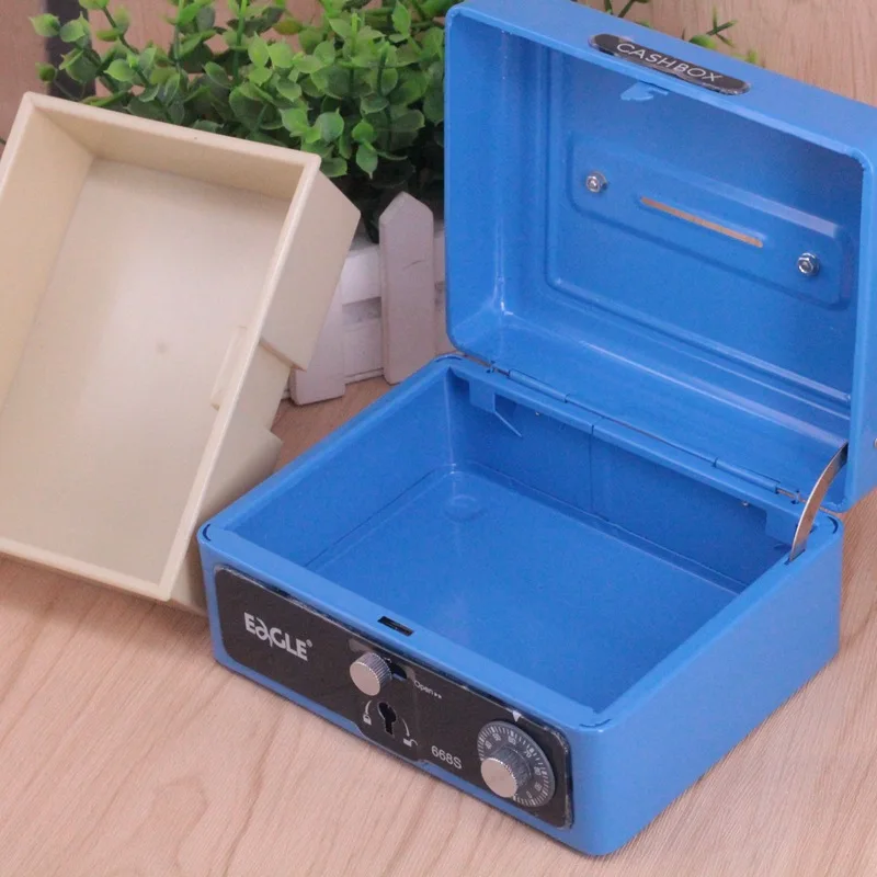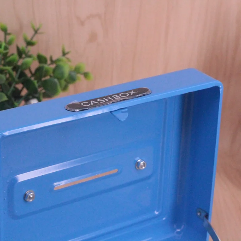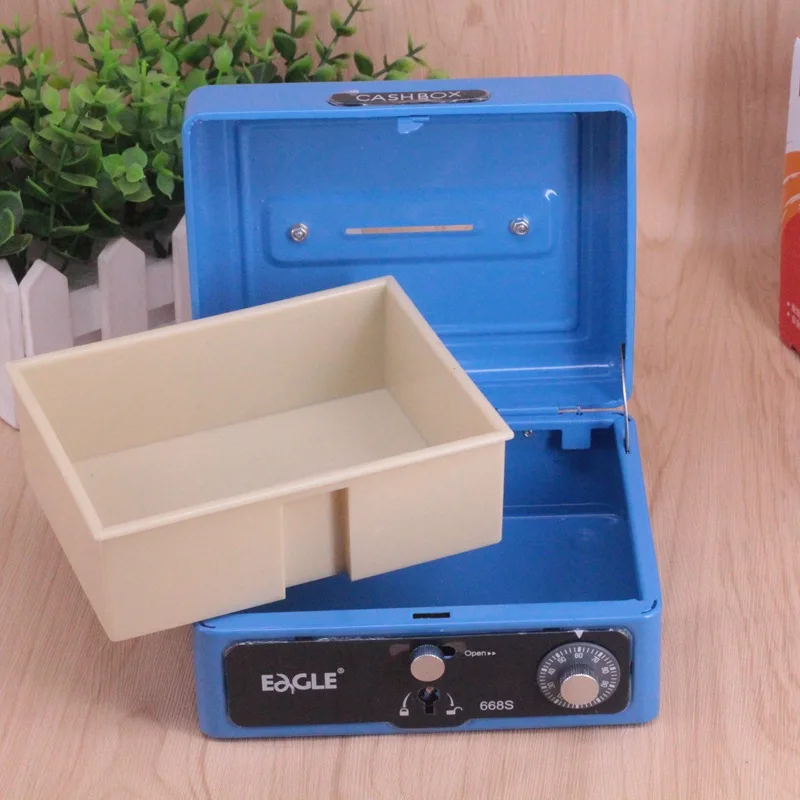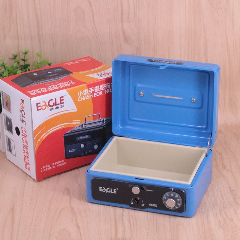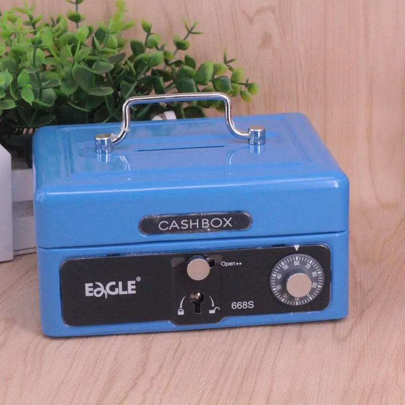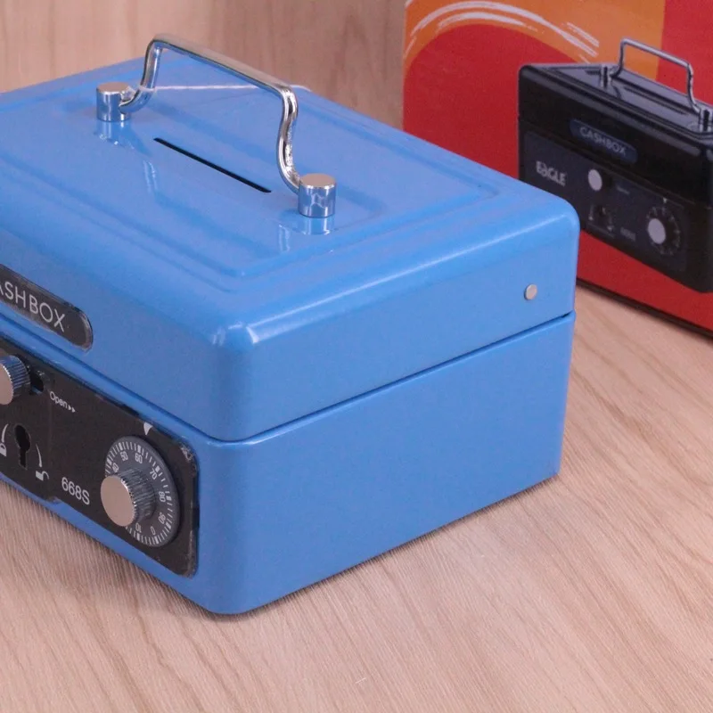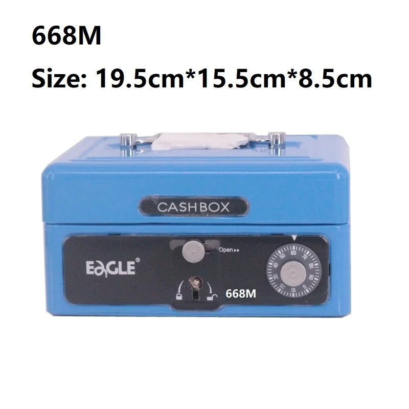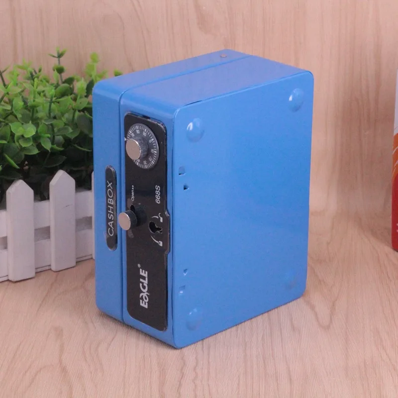 Creative Pop Metal Portable Cashier Box Piggy Bank Cash Key SafeProduct details:Color: blueSize: 668S:15cm*12cm*7.5cm. 668M:19.5cm*15.5cm*8.5cm