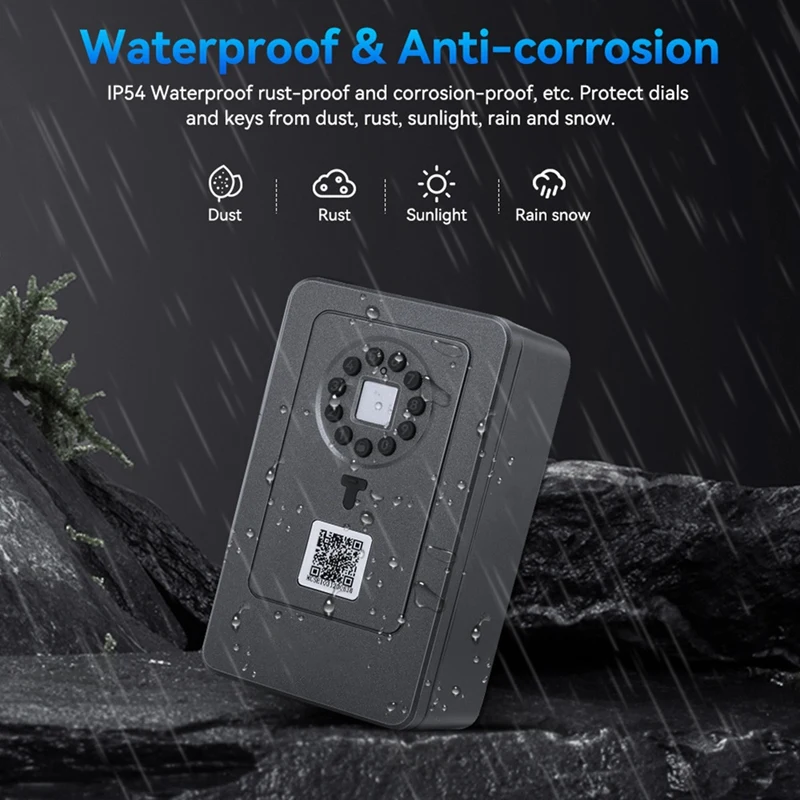 The device is waterproof and anticorrosive, waterproof grade IP54; protect the dial and keys from dust, rust, sunlight, rain and snow.Emergency power unlocking.USB cable only for emergency unlocking can not be used for charging. (Non-rechargeable battery)
