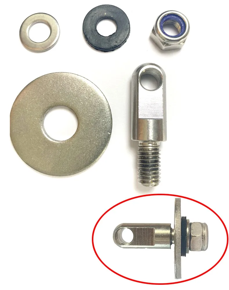 4) On the inside of the can,put the neoprene washer over the threads of the locking stud,followed by the small washer,and then the nylon lock nut.Tighten the assembly with a wrench,being aware that the round side of the locking stud may have sharp edges/burs,so a tool should be utilized onroundside,not bare hands