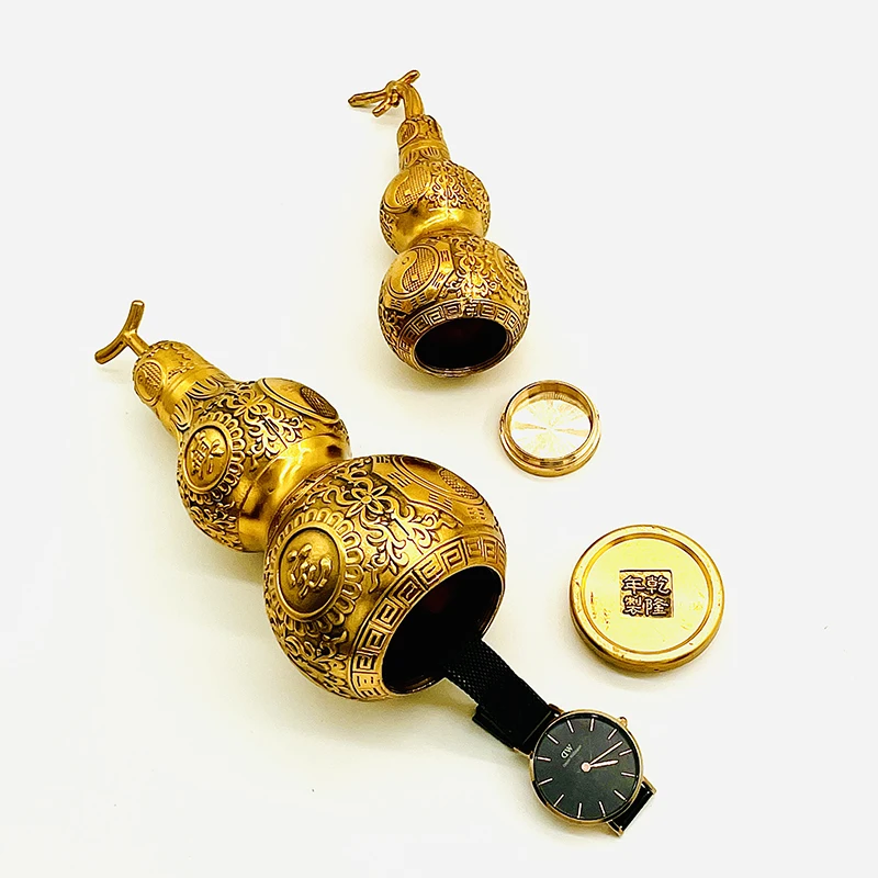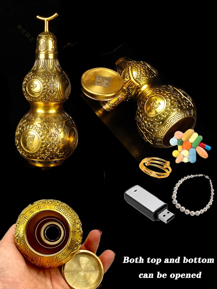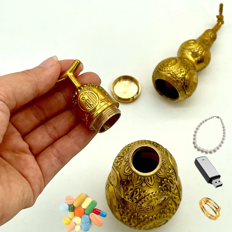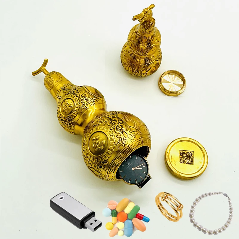 Brass Gourd Ornament Sight Secret Safe Box Storage Secret Compartment Key Holder Box Outdoor Stash Pill Money Hidden Box