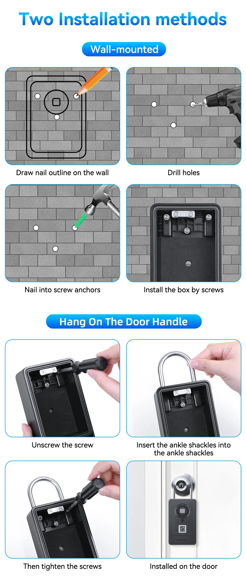 Camaroca Smart Key Safe Box Fingerprint Storage Lock Key 6 Digital Password Code Waterproof Security Lockbox Works with OKLOK