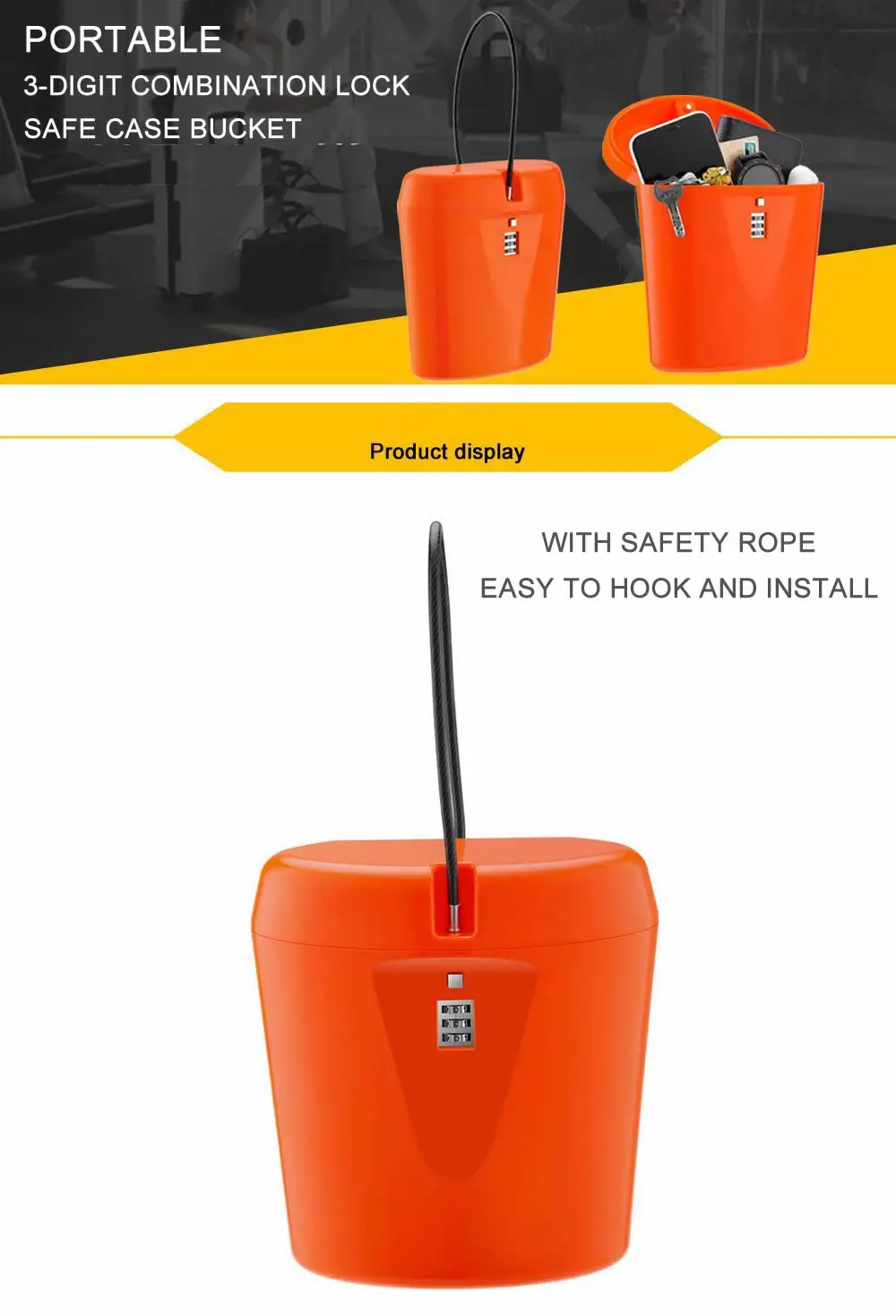 Creative 2L Portable Safe Case Bucket 3-digit Combination Lock With Rope Outdoor Camp Hiking Sports Hidden Security Storage Box