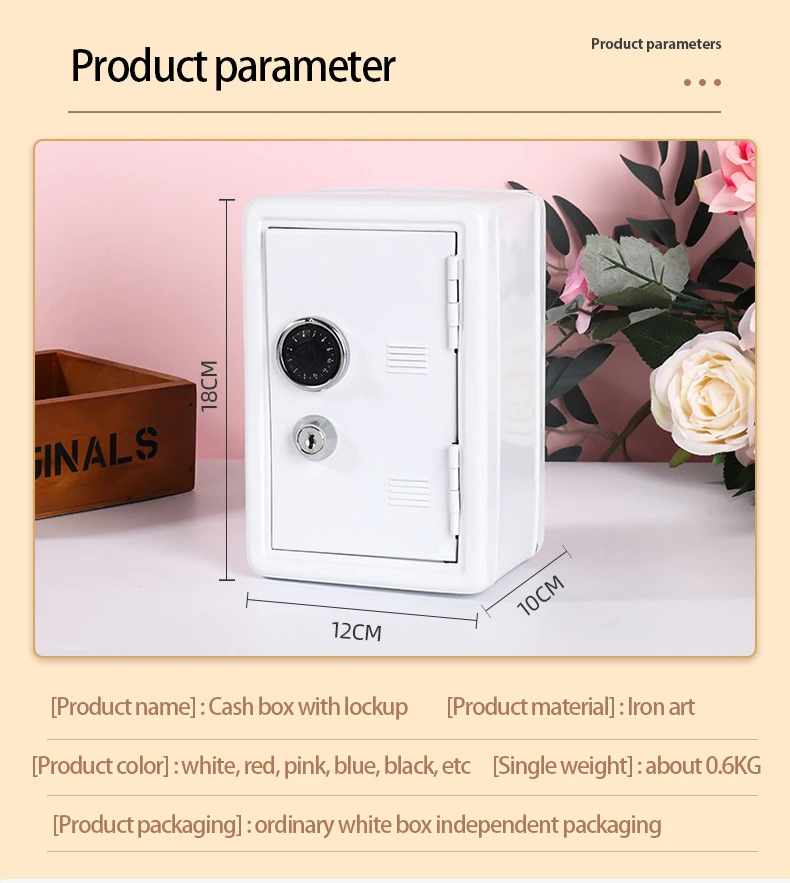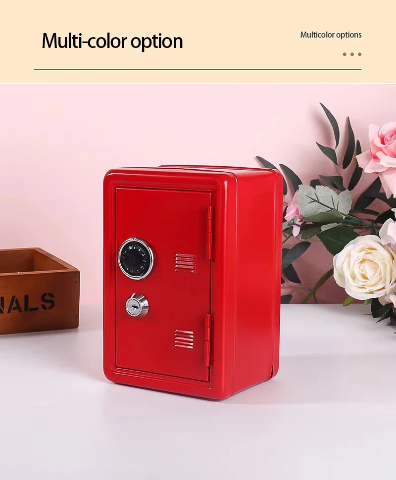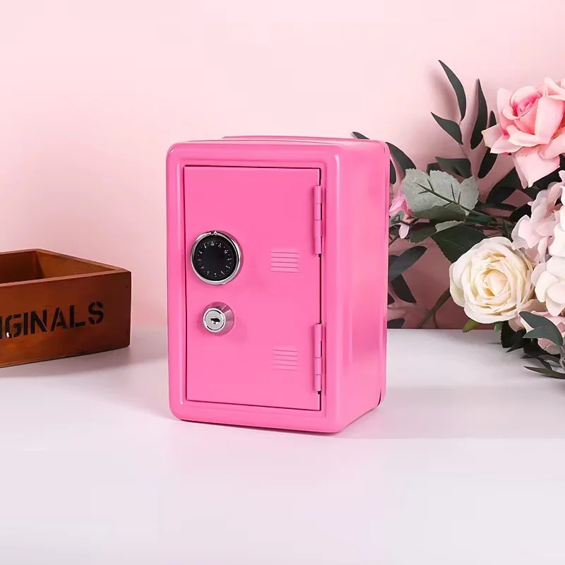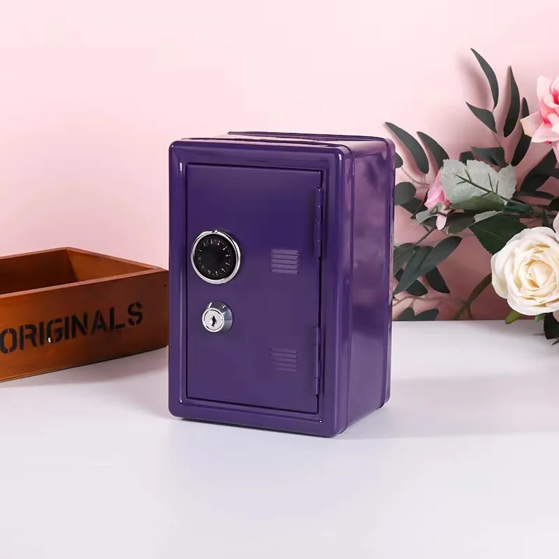 Creative children's vertical mini cash box Metal safe with lock Household change savings box storage box