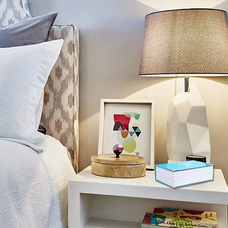 Hardcover cover easily fits into any bookshelf, book, or other items on the table.