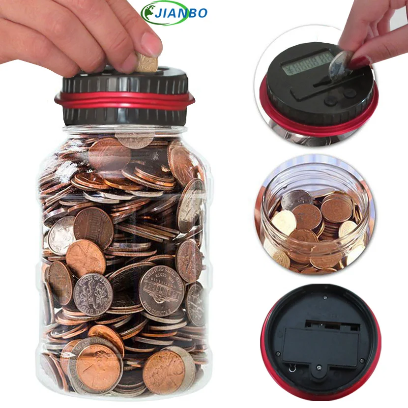 Digital Money Transparent Key Safe Box Jar Intelligent Electronic LCD Coin Counting Plastic Piggy Bank Saving Money Security Box