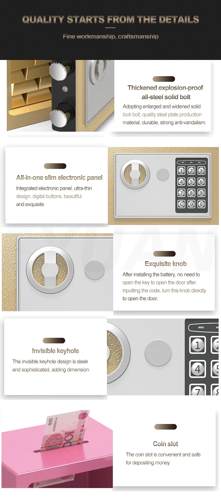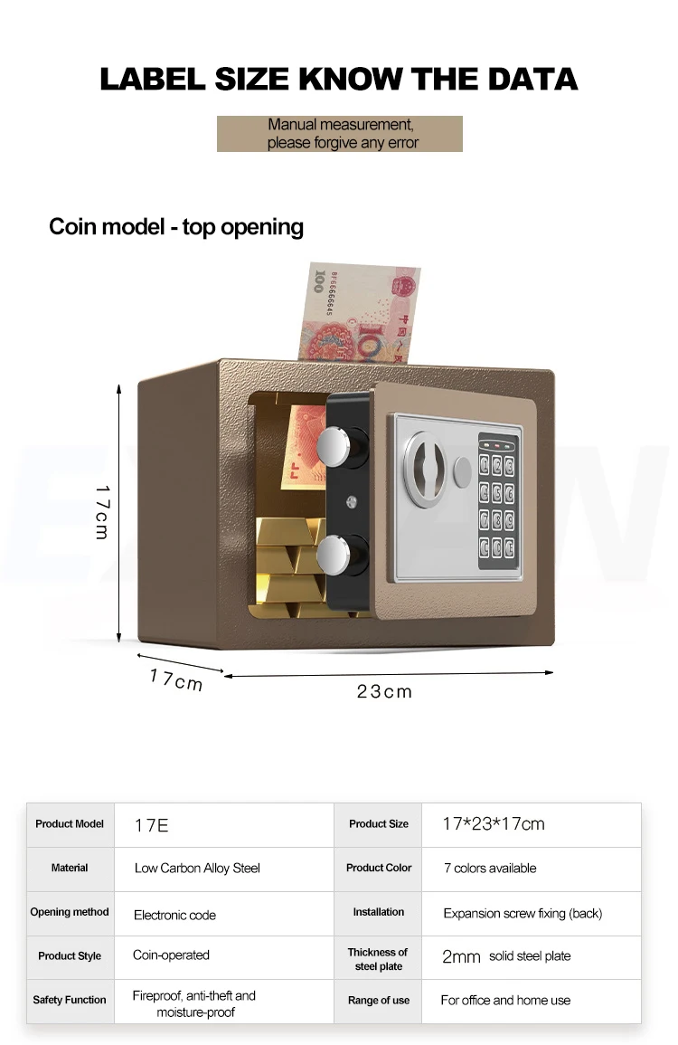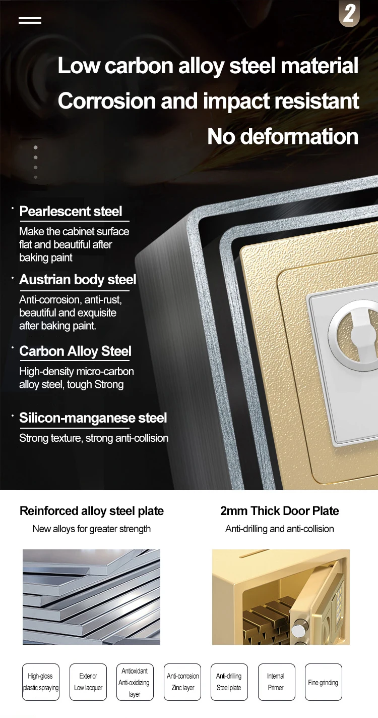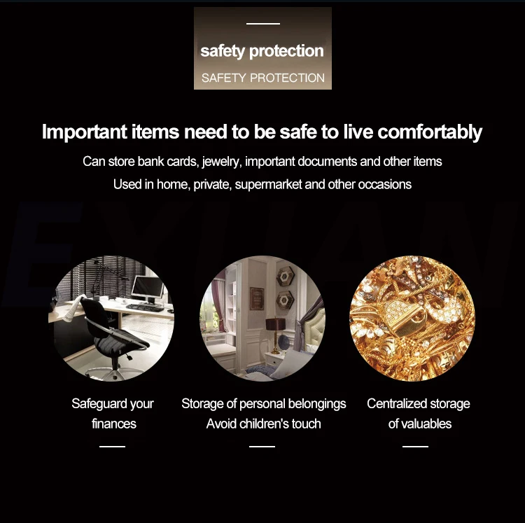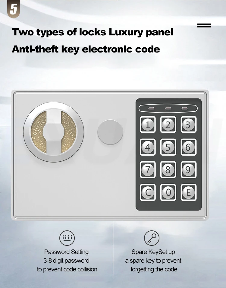Product Description 0.8/1.7/2.1Cubic Feet Safe Box This safety box features a 0.8/1.7/2.1 cubic feet storage capacity and reliable lock systems. You can securely and quickly access the safe with a key, fingerprint, digital code, or fingerprint & digital keypad. It