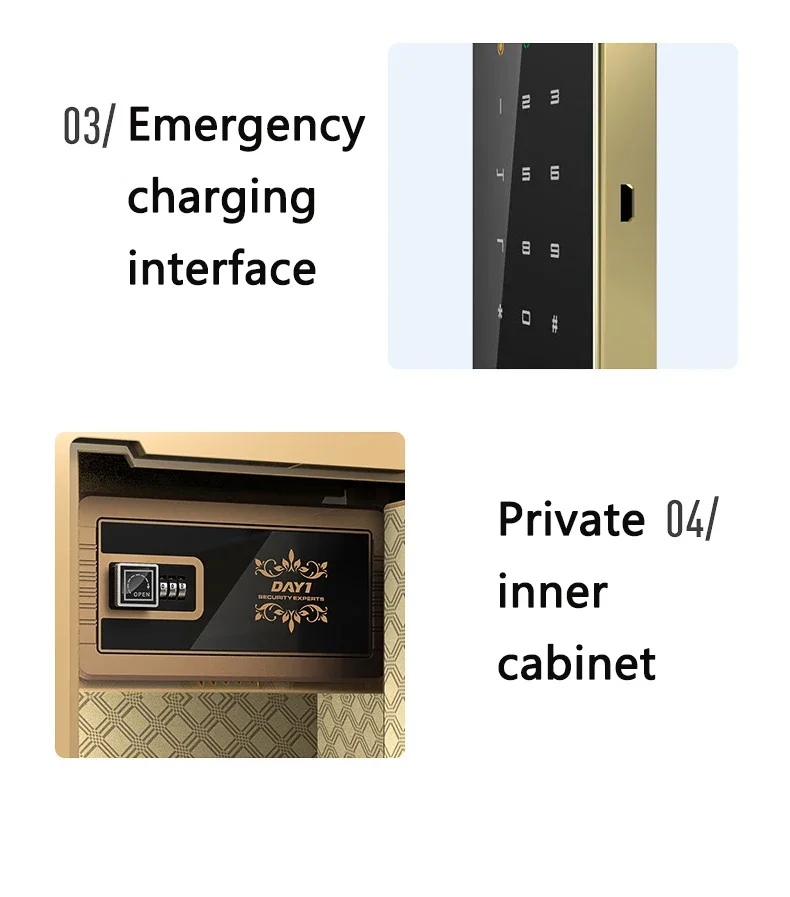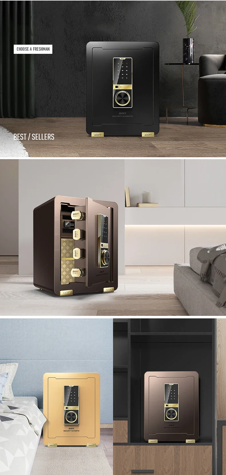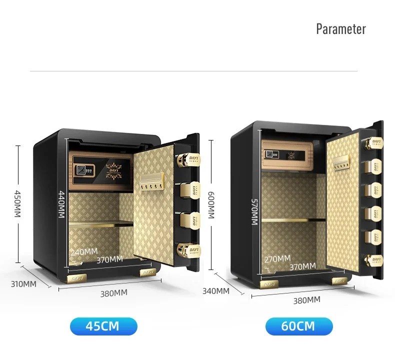 Product Description 0.8/1.7/2.1Cubic Feet Safe Box This safety box features a 0.8/1.7/2.1 cubic feet storage capacity and reliable lock systems. You can securely and quickly access the safe with a key, fingerprint, digital code, or fingerprint & digital keypad. It