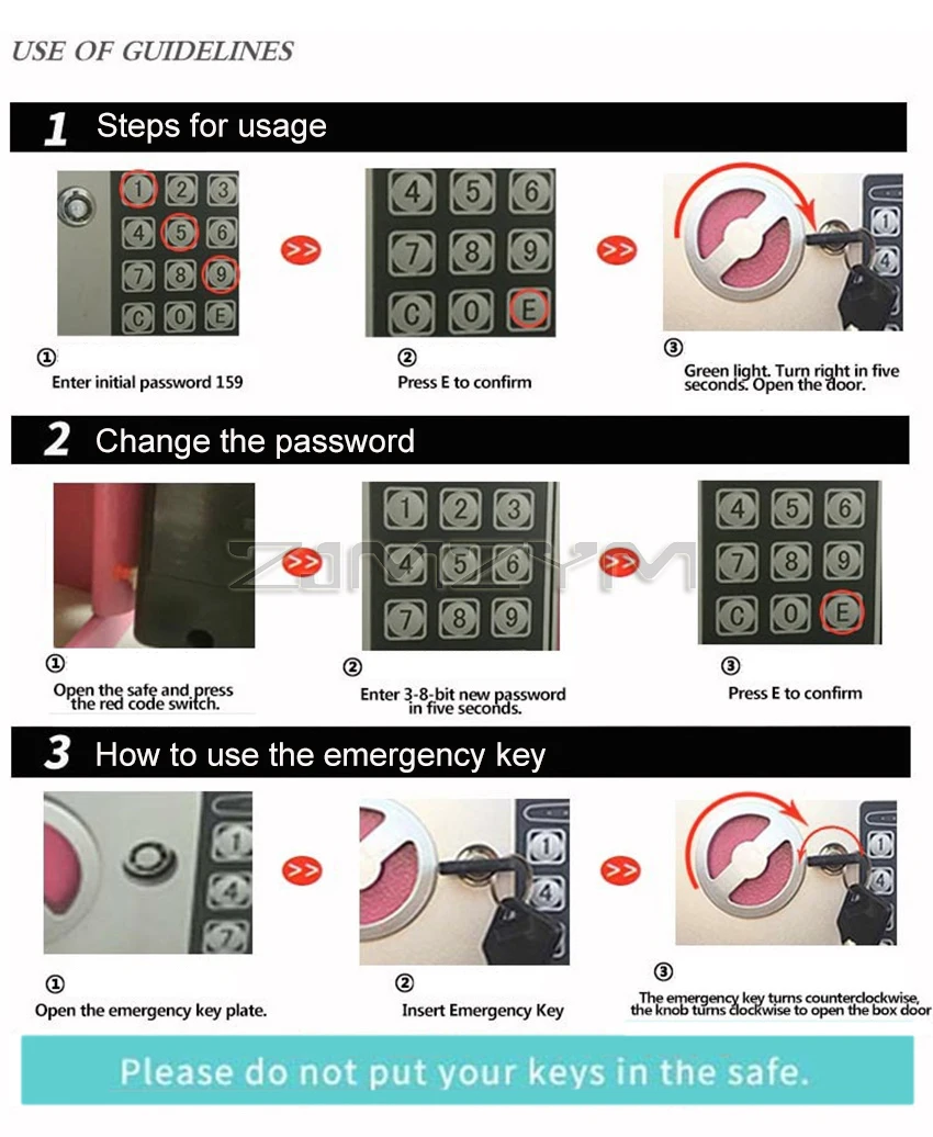 1.This product contains only a mini safe and nothing else.2.When the password is forgotten or the battery is dead, the emergency key can be opened (do not put the emergency key in the box)3.This product does not contain batteries.4.The product pictures are all taken in kind. Due to factors such as shooting technology, light, display parameters, etc., the color of the actual product received will be different from the photos, please refer to the actual product.Thanks for your understanding!