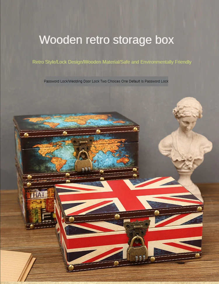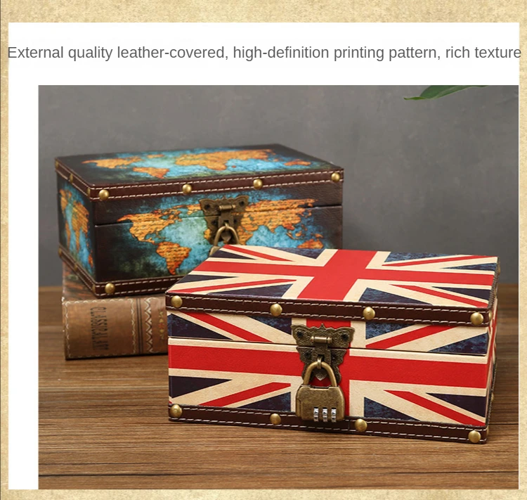 Dustproof Retro Camouflage Safe with Lock Storage Box Storage Leather Password Box Safe Lock Box