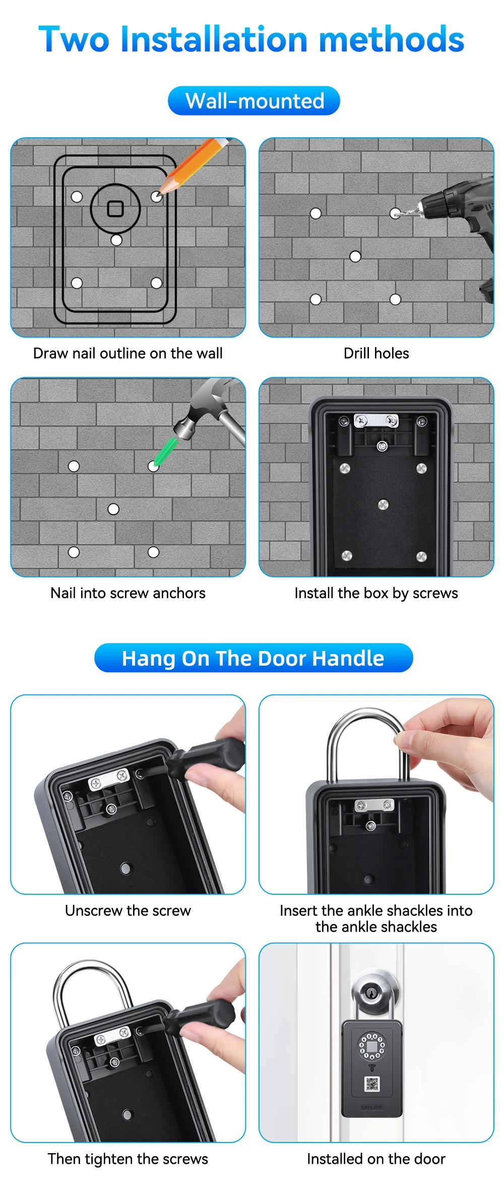 Smart keybox improves work efficiency If you are the landlord of a rental property Your tenant can only hold valid unlock permissions during the lease period. Your phone can set cycle authorization, and you can set a time period for your tenant to unlock. If the lease period expires, the tenant will not be able to use it If you are the apartment manager Temporary passwords can be generated remotely, with a validity period of 5 minutes. Users can share the unlocking information with tenants to view or clean the room, without waiting If you are the store owner Employees have their own password to enter the store, and you can view the unlocking record If you are the team manager, the car rental owner Remote sharing of user unlocking, generation of temporary password, no need to personally come and deliver car keys
