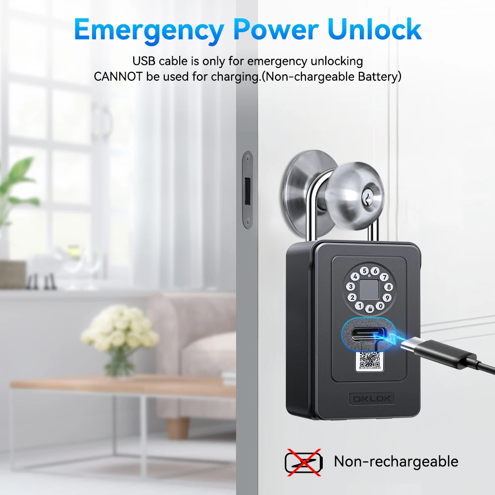 ● Emergency power unlocking.USB cable only for emergency unlocking can not be used for charging. (Non-rechargeable battery)