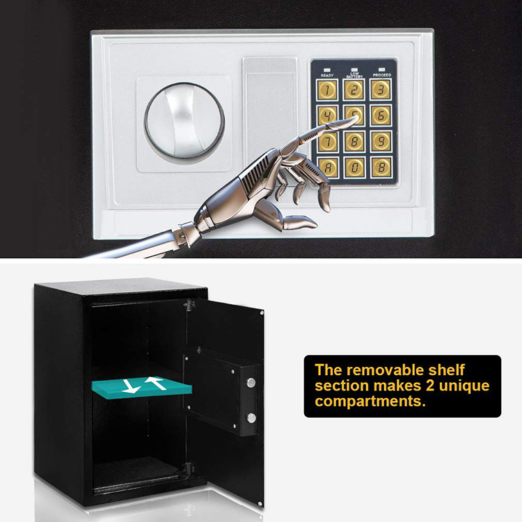 Product Description 0.8/1.7/2.1Cubic Feet Safe Box This safety box features a 0.8/1.7/2.1 cubic feet storage capacity and reliable lock systems. You can securely and quickly access the safe with a key, fingerprint, digital code, or fingerprint & digital keypad. It