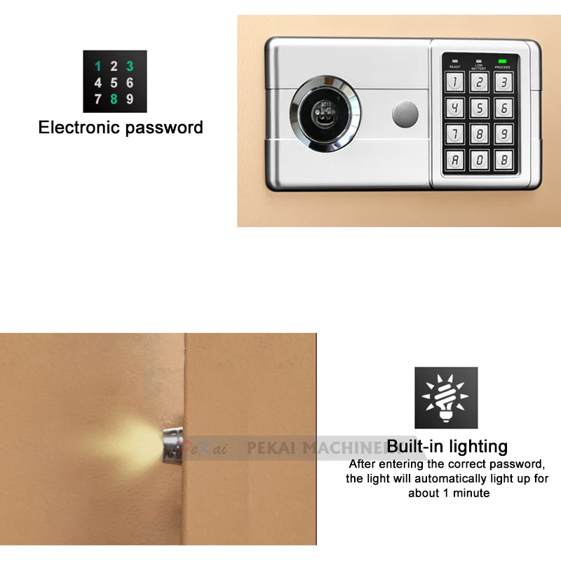 - 【ELECTRONIC LOCK SYSTEM】 - With a reliable electronic lock system, the home safe effectively keeps children and unauthorized users from gaining access. It can be programmed with two sets of codes and provides two override keys for emergency use.