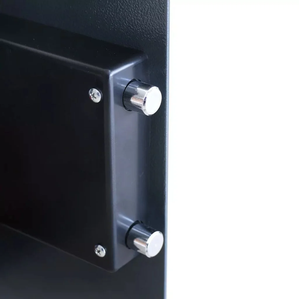 This highly secure electronic safe is perfect to be used at home or in the office. This electronic safe is made of heavy duty, powder-coated steel. Since the safe is equipped with a double bolt locking and a coding system provides the safe protection against theft and burglary. This durable safe is also provided with a removable shelf to keep your things organized. The floor is lined with red carpet to avoid scratching your valuables. Electronic safe can be either mounted on the wall or mounted on the ground using the supplied screws. It also comes with 4 AA batteries are included.