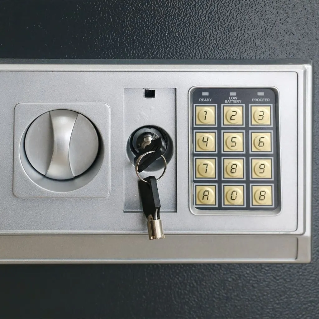 Keep your personal belongings, cash or other valuables in this durable electronic safe to secure.