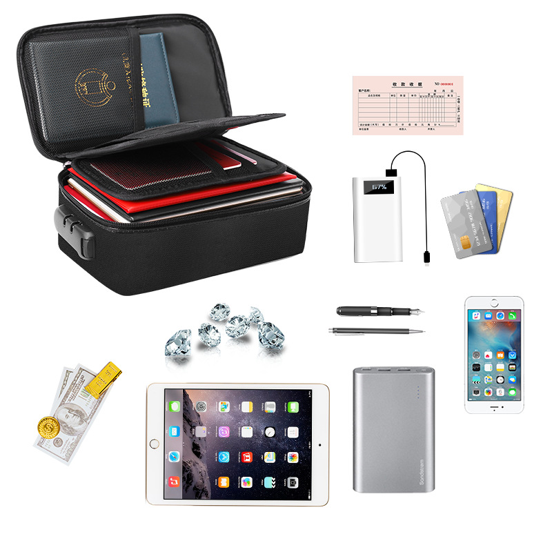 File Bag With Lock Fireproof Waterproof 3-layer Document Bag File Safe Portable Travel Storage Pouch For Documents Mini Laptops
