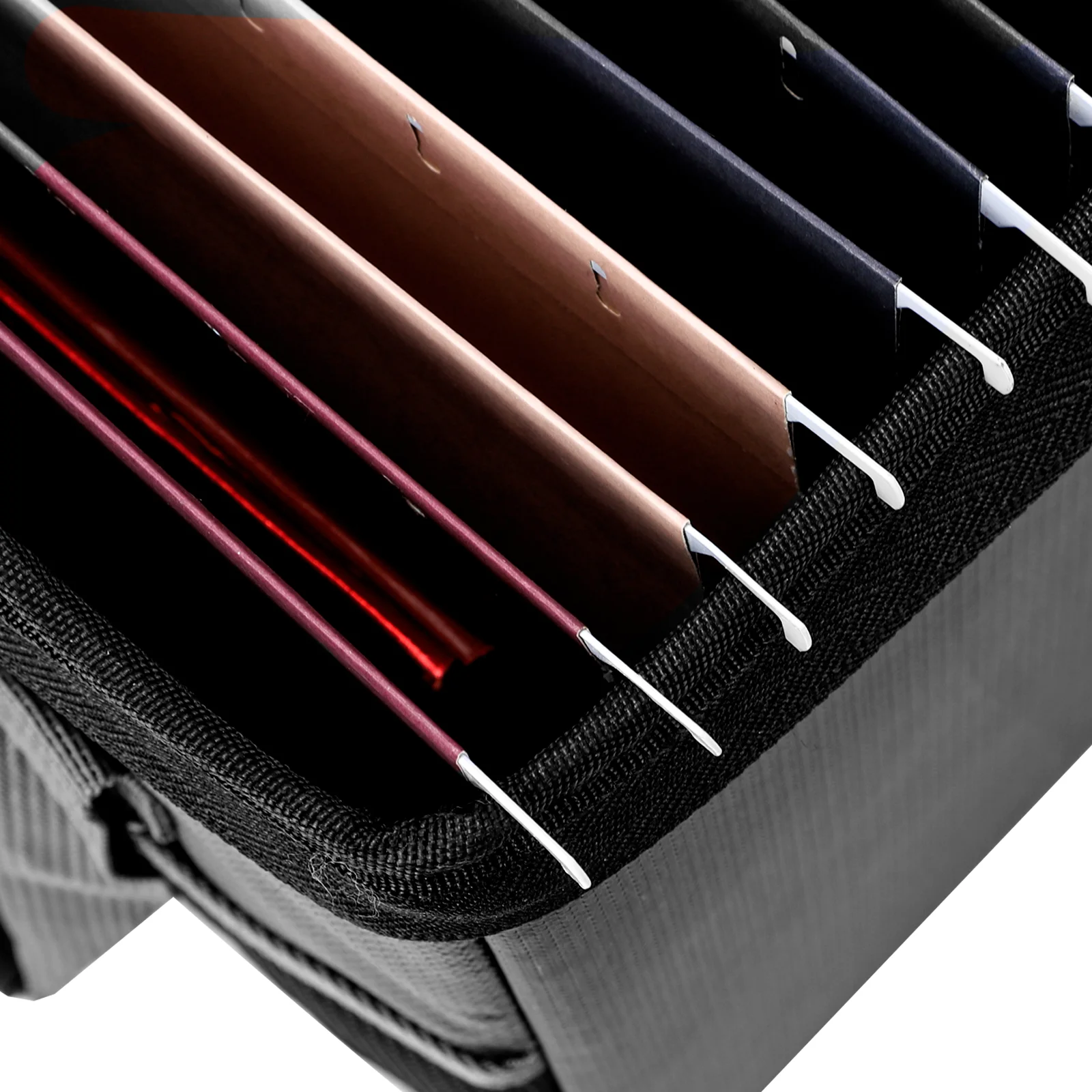 The sides and top of the fireproof box are designed with sturdy handles for easy lifting, and you can put it in your home, office, car, and other places. Practical card slots allow you to find anything at any time. When not in use, use the folding function to release the foldable file box - smooth and neat.