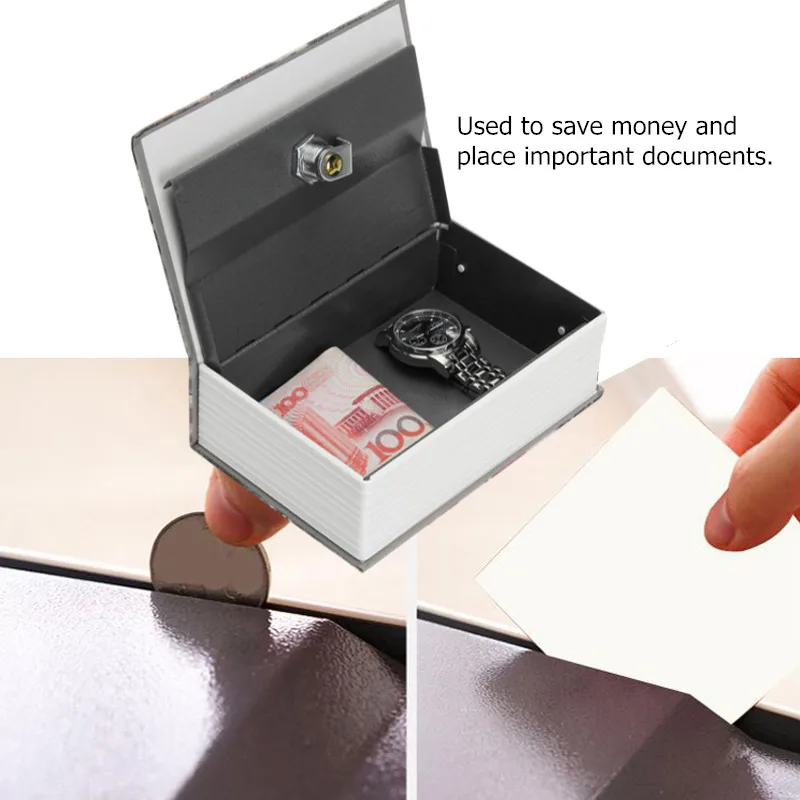 Description:Hidden Dictionary Book Safe is made of high quality thick steel and designed like a real book. It can be safely hidden in a shelf. It can store valuables in plain sight. Equipped with two keys, easy to operate.With a You can keep money, jewelry, passport and documents in safe. Specification:Name: Hidden Dictionary BookMaterial: steelPackage Dimension:180*117*55MM Features:- Looks like real book, safely hiding in the shelf.- Store valuables in plain sight.- Safe box is enveloped in faux pages.- Open it up to reveal the steel safe.- Combination lock designed, do not need keys. Package Included:1 x Book Safe Storage