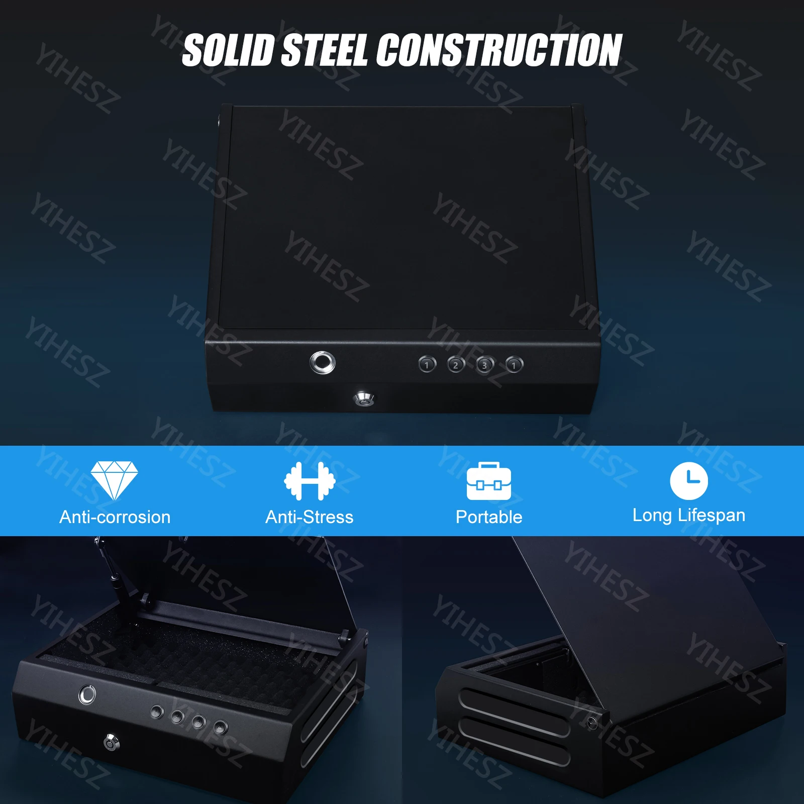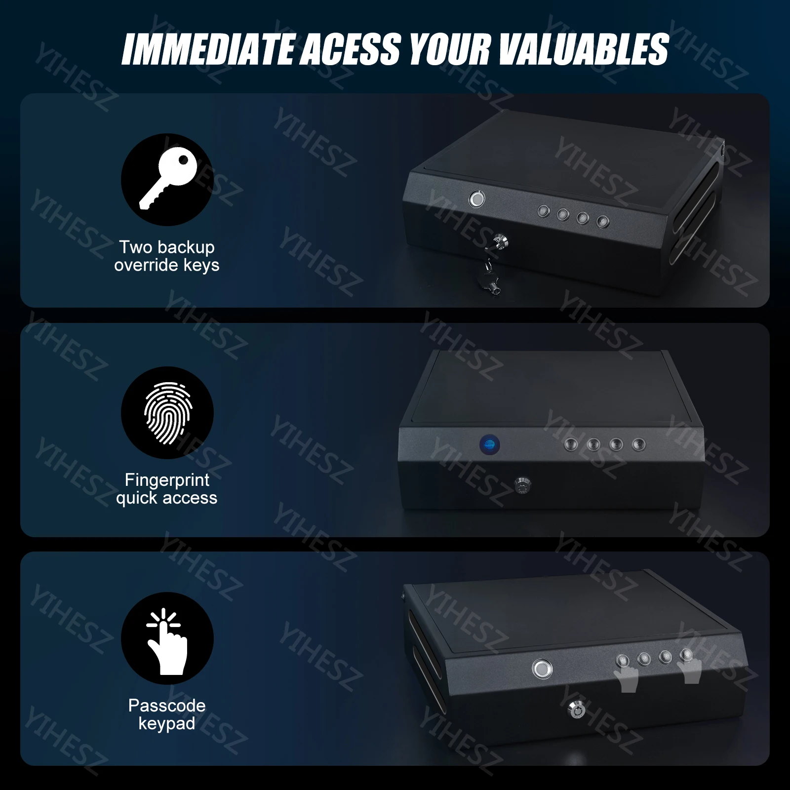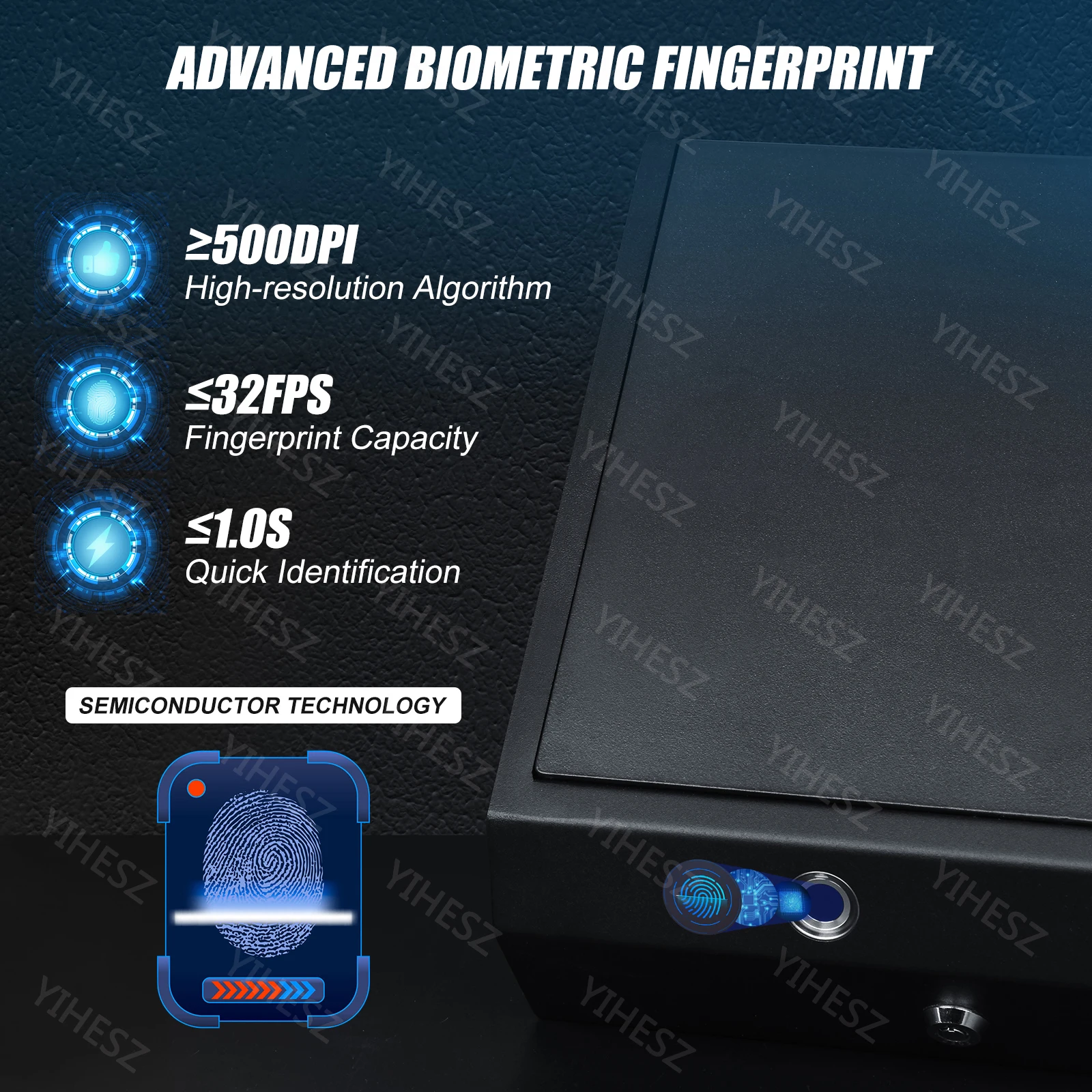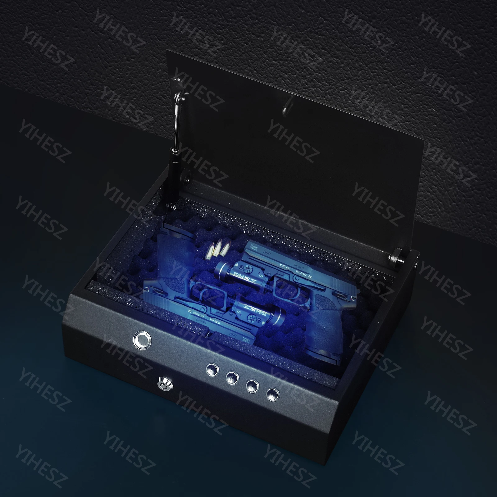 Gun Safe Box Biometric Fingerprint Password Key Unlock Safe Deposit Box Solid Steel Pistol Safe Security Box For Weapon
