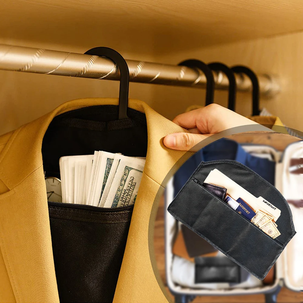 Hanger Diversion Safe Fireproof Document Bag Hidden Pocket Safe Money Cash Stash Secret Safe Fits Under Hanging Clothes