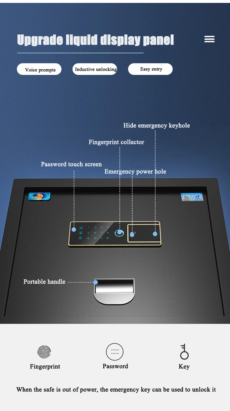 Product Description 0.8/1.7/2.1Cubic Feet Safe Box This safety box features a 0.8/1.7/2.1 cubic feet storage capacity and reliable lock systems. You can securely and quickly access the safe with a key, fingerprint, digital code, or fingerprint & digital keypad. It