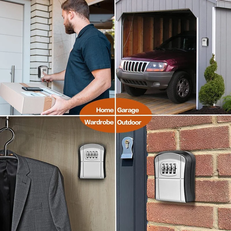 [AMPLIA APLICACIÓN]-Esta es una gran caja de llaves de código para almacenar llaves y tarjetas bancarias, etc. Se puede montar en la pared para el hogar, oficina, almacén, casa de vacaciones o en cualquier lugar que lo necesite. Puede compartir llaves de repuesto con sus amigos, familiares, vecinos y cuidadores. Con Esta caja fuerte con llave exterior con cerradura, no tiene que preocuparse por las llaves que tiene debajo de la alfombra.