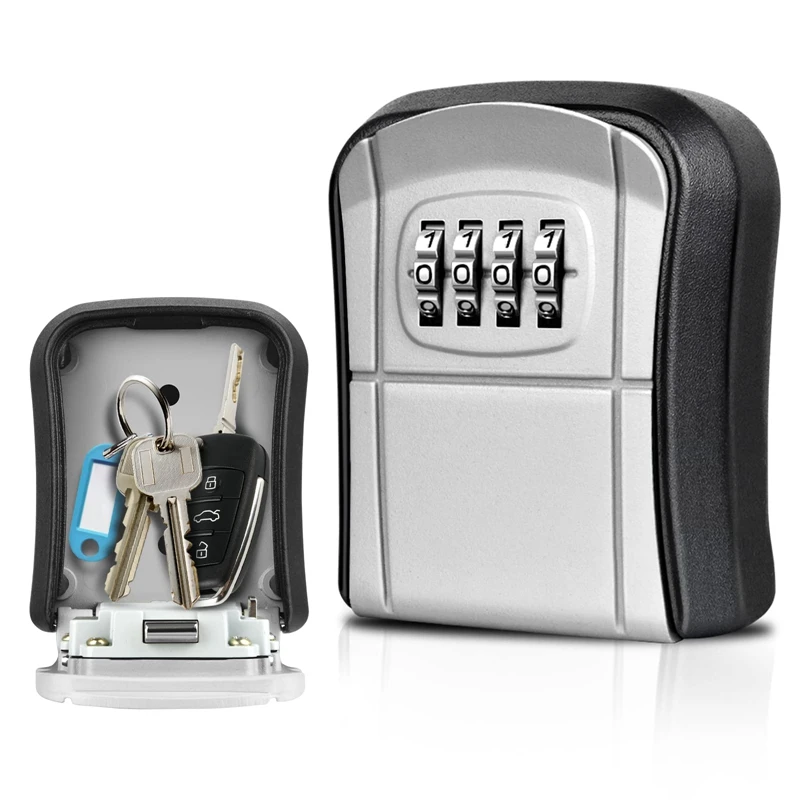 Key Box Wall Mounted Mini Key Safe Outdoor Key Box With Resettable 4-Digit Numeric Code Waterproof Key Box