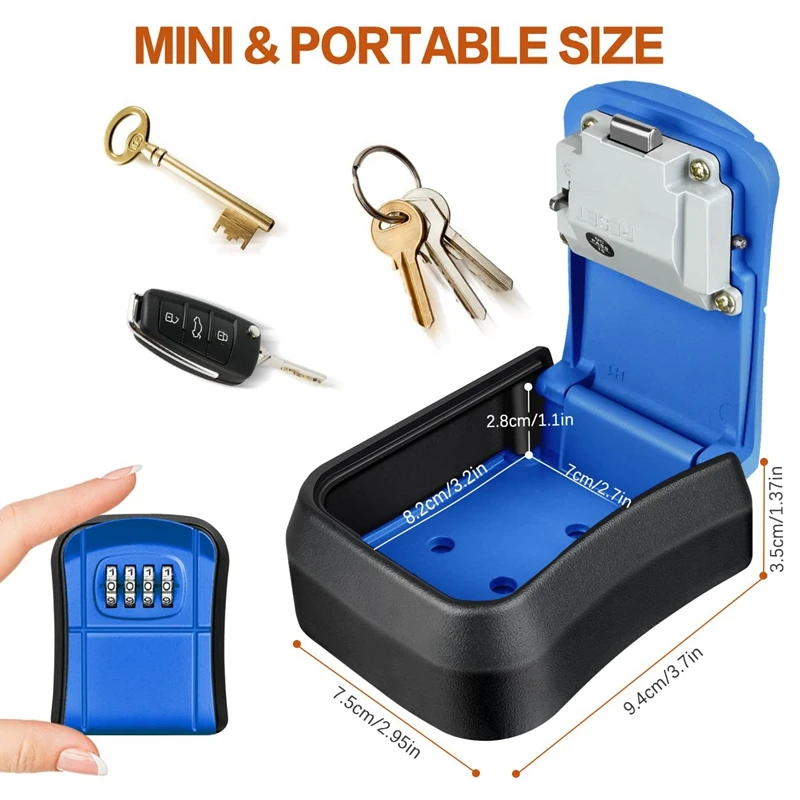 [MINI SIZE&EASY USE] - External Size (H x W x D): 3.7 x 2.95 x 1.37 inch, Internal Size (H x W x D): 3.2 x 2.75 x 1.1 inch. Comes with palm-sized key safe box, which can hold multiple keys, perfect for daily business, friends, relatives, home services, pet sitters, real estate business and Airbnb rentals, etc