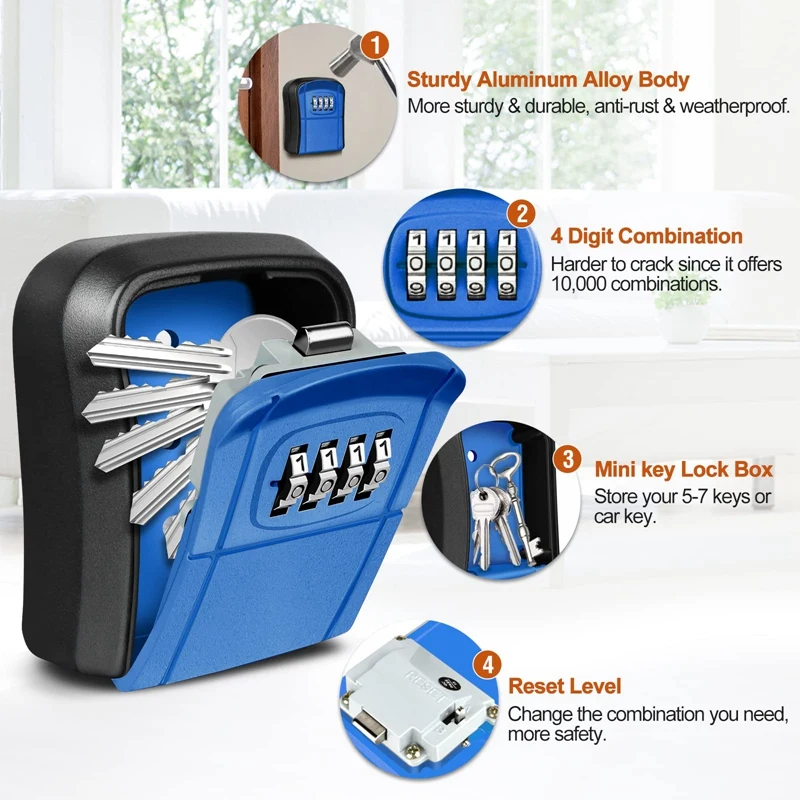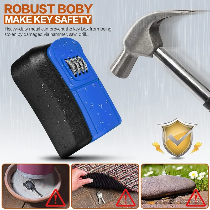 [WIDE APPLICATION] - This is a great code key box for storing keys and bank cards, etc. It can be wall mounted for home, office, warehouse, vacation home or anywhere you need it. You can share spare keys with your friends, family, neighbors and caregivers. With this lockable outdoor key safe, you don't have to worry about keys you've under the carpet.